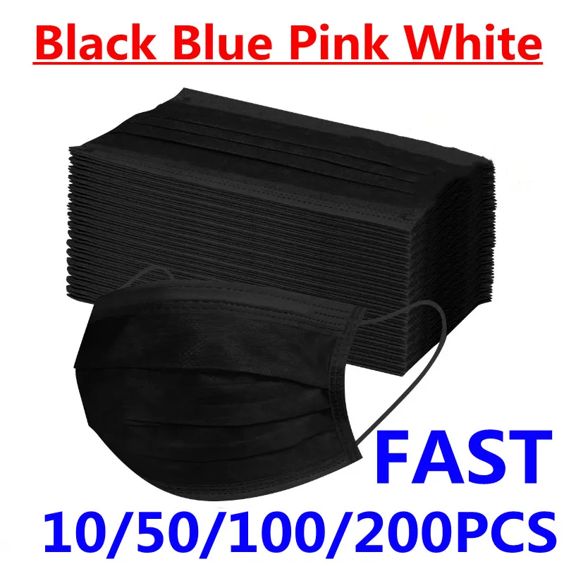 10-200 шт. маска одноразовая маска для лица Черный Nonwove 3 Слои м...