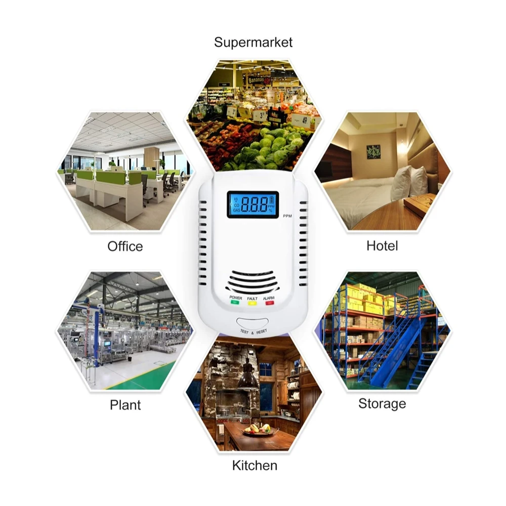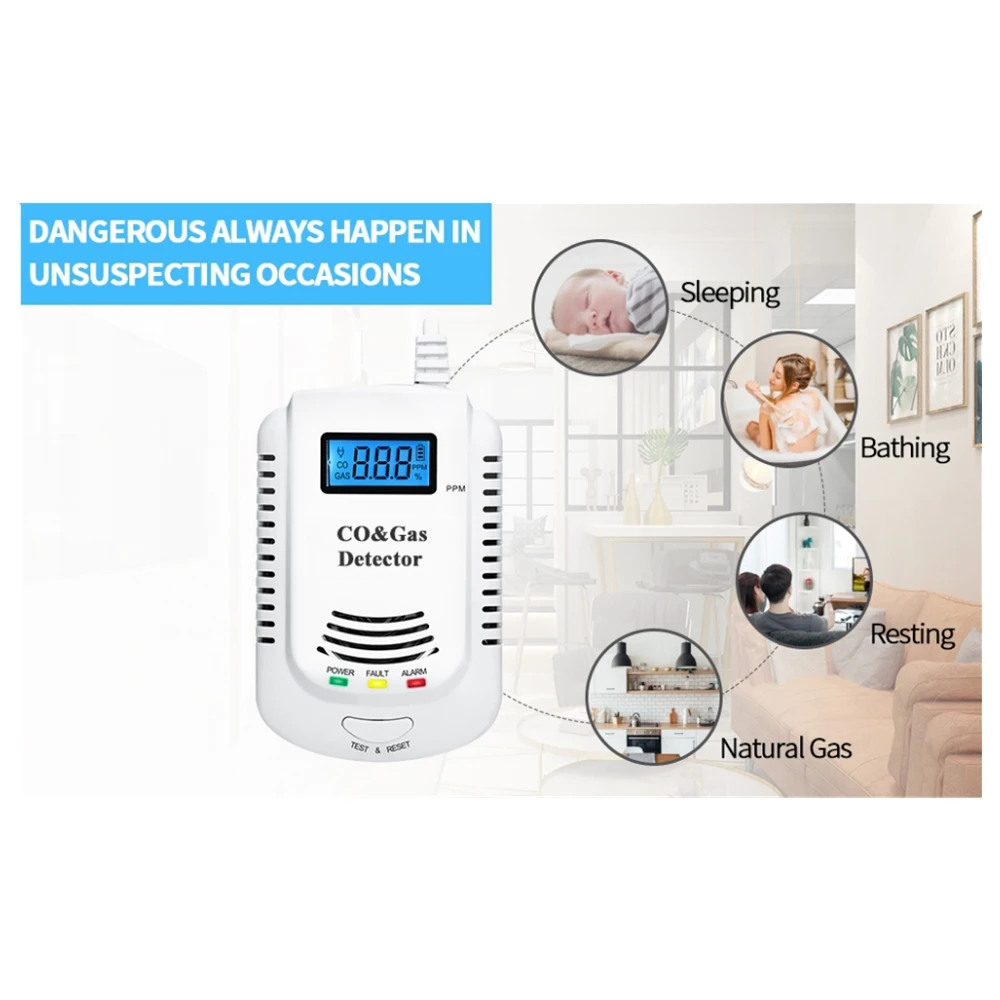 Детектор Природного Газа 2 в 1, домашний детектор утечки газа, метана, пропана, CO с сигнализацией об утечке, со светодиодным дисплеем