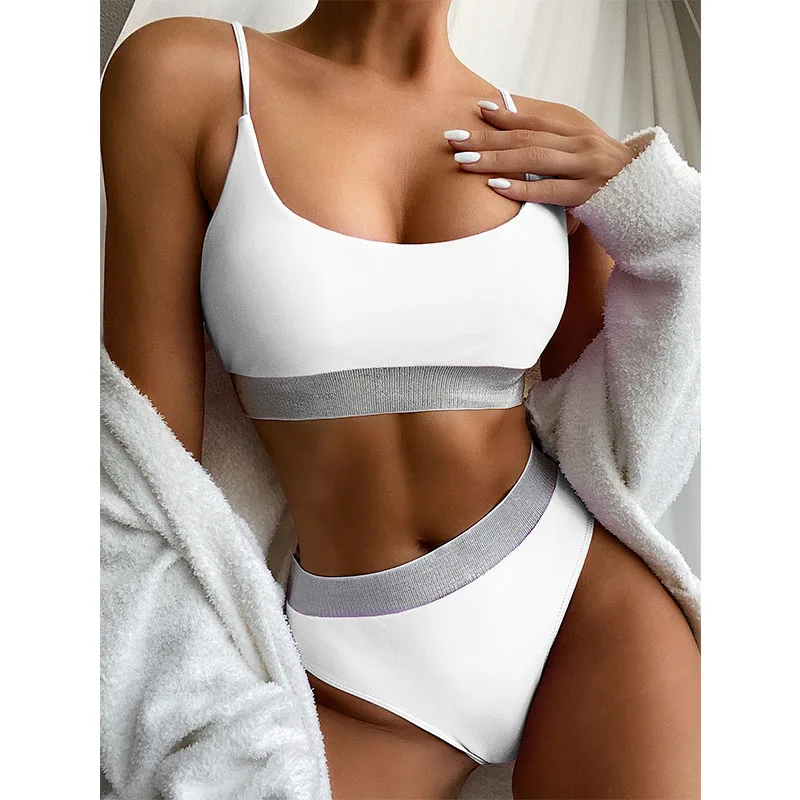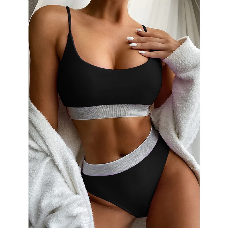 2021 модный лоскутный Однотонный женский купальный костюм-бикини, женский спортивный купальник с пуш-ап, пляжная одежда, пляжный купальник с высокой талией