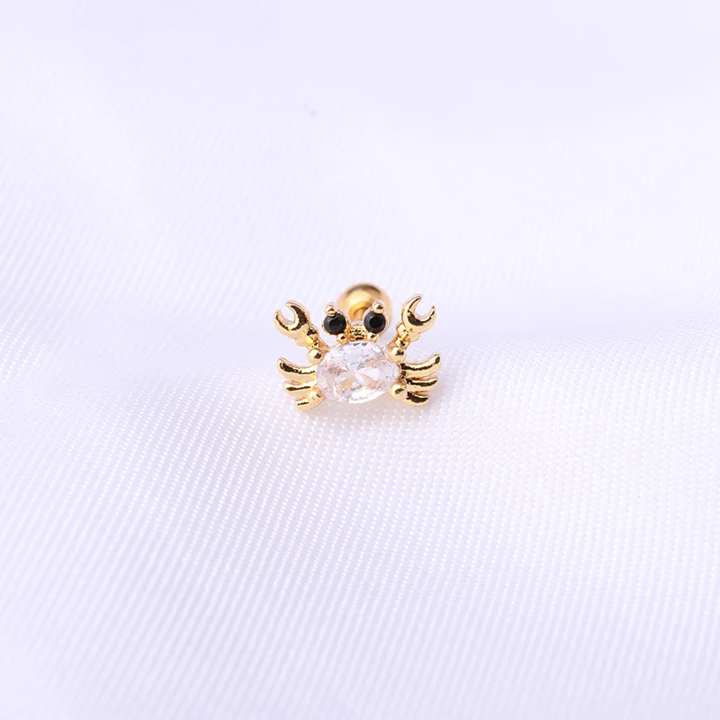 1 шт. морской Животные Cz из нержавеющей стали, серьги в виде краба Медузы штанга гантельного типа спираль Козелка Rook раковины серьги-гвоздики пирсинг уха Летний пляж ювелирные изделия