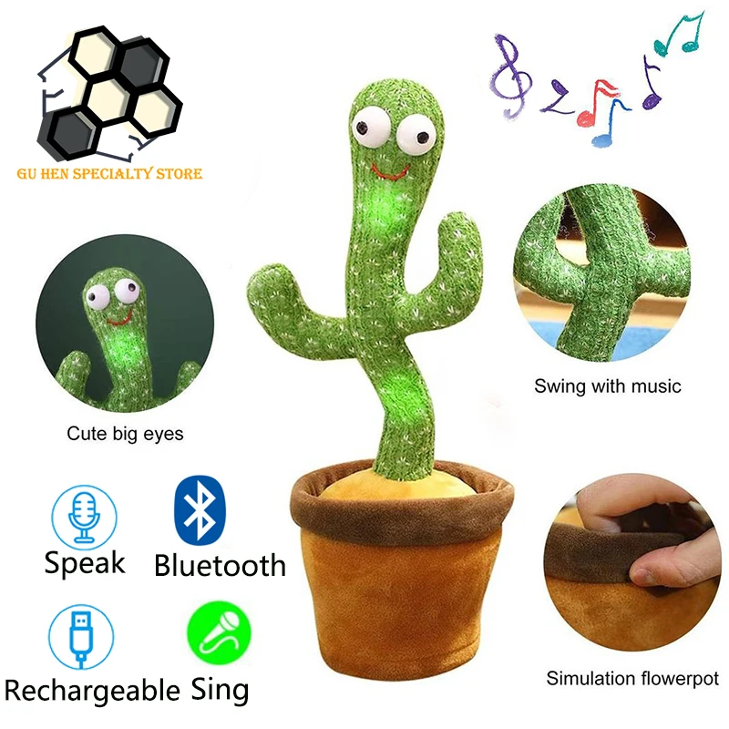 Кактус плюшевые игрушки электрическое пение 120 песен, танцы, скручивание кактуса, светящаяся запись, обучение говорить, скручивание плюшевые игрушкиХарактеристика:1. Материал: игрушка-кактус изготовлена из полипропиленового хлопка, который является мягким и удобным, безопасным и здоровым.2. Раннее Образование: способствует раннему образованию. Игрушка прыгает с ритмом и может привлечь внимание ребенка.3. Забавные игрушки: в игрушках есть bluetooth-соединение, которое может воспроизводить песни на различных языках, и они могут научиться говорить и танцевать в течение нескольких часов, что принесет детям жизнь счастливого времени.4. Лучший подарок: веселая музыка и танец очень подходят для создания приятной атмосферы и проведения вечеринок.5. Ежедневное техническое обслуживание: Не мойте в воде, избегайте высокой температуры и Остерегайтесь сильного давления.Опишите:Эта игрушка-кактус может сиять, танцевать, записывать и Учиться говорить. Это идеальная и интересная игрушка.Спецификация:Размер: 32 смМатериал наполнения: полипропиленовый хлопокСпособ зарядки: usb-кабель для зарядкиПосылка включает в себя:1 * игрушка-кактус (без батареи)Примечания:1. Из-за ручного измерения допускается погрешность 0-1 дюйм. Спасибо за понимание.2. Монитор не калиброван, и цвет объекта, показанного на фото, может немного отличаться от фактического продукта.