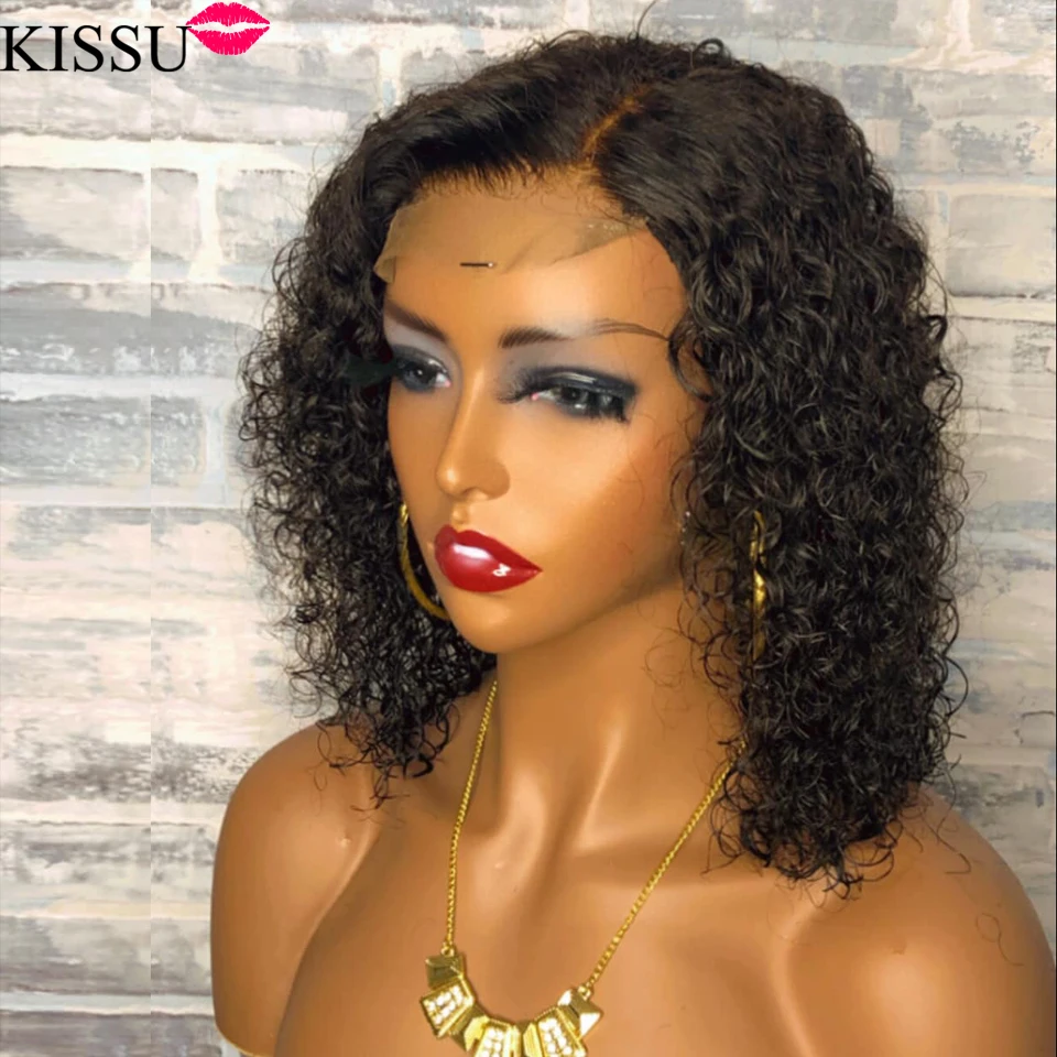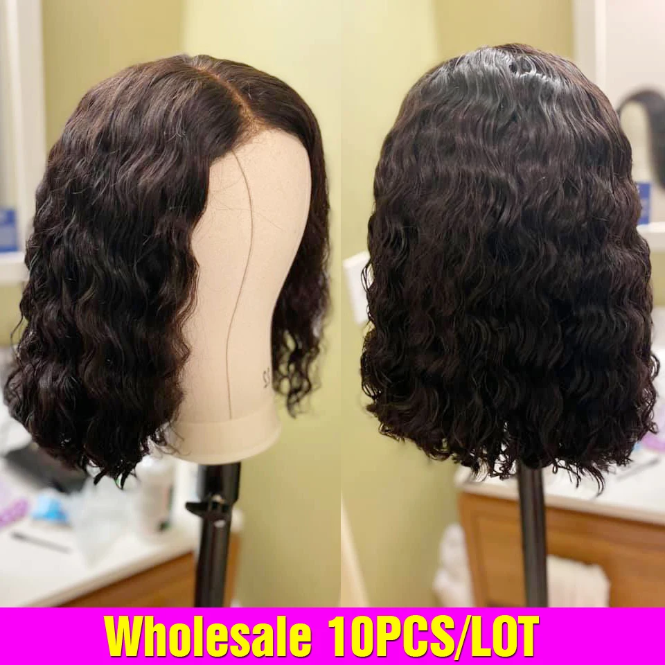 10 шт./лот, оптовая продажа, короткий парик с Бобом, глубокая волна, фронтальный парик, кудрявые бразильские кружевные передние человеческие волосы, парики для женщин, 4x4, парики с кружевом