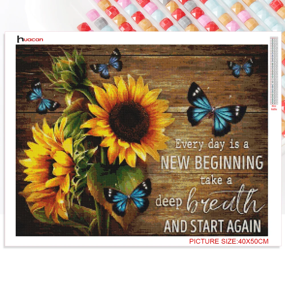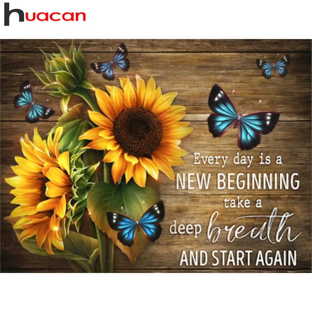 Алмазная живопись 5D Huacan, вышивка крестом, Подсолнух, Бабочка, Алмазная мозаика, вышивка текстом, цветком, модульная модель фотографии настенные декорации