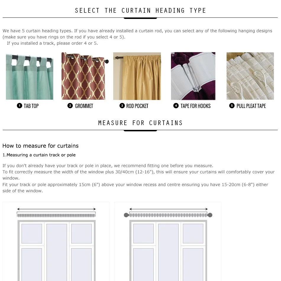 • Тип головки для обработки окон: втулка, карман для стержня, втулка, лента для крючков, Вытяжная плиссированная лента