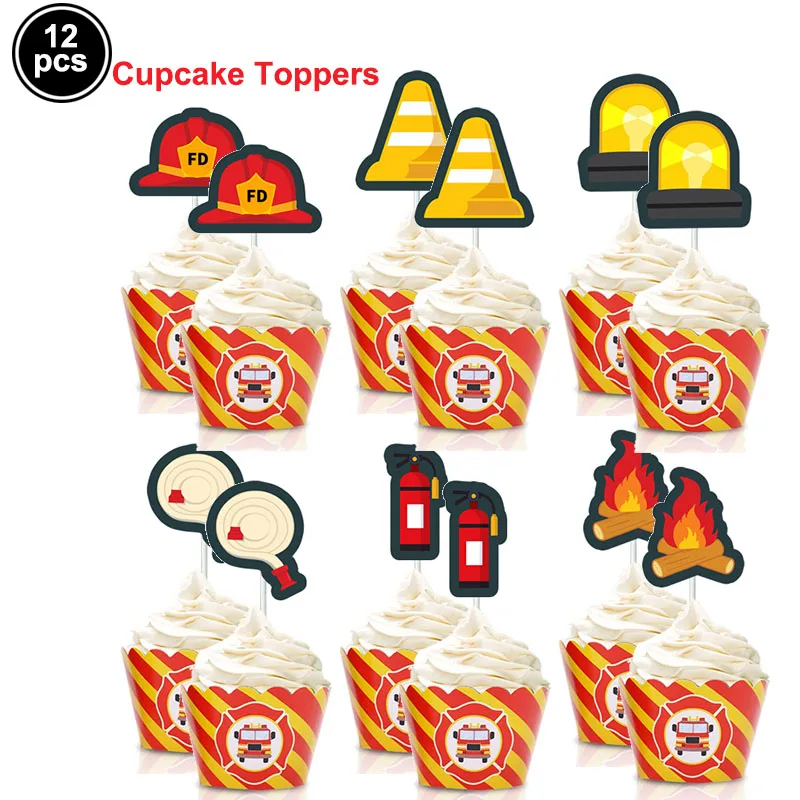 Строительная техника вечерние Декор посуда для капкейка-баннеры для дня рождения для маленьких мальчиков, для малышей с изображением пожарной машины шар пожарный вечерние поставки