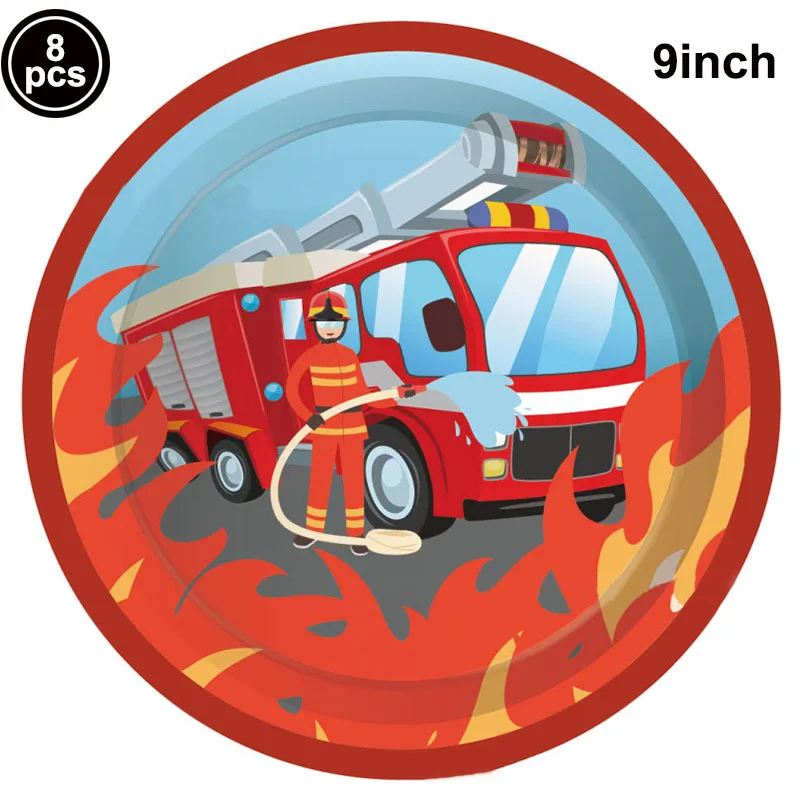 Вечерние Декорации для строительных машин, столовые принадлежности для кексов, баннеры для мальчиков на день рождения, пожарные воздушные шары, вечерние принадлежности для пожарных