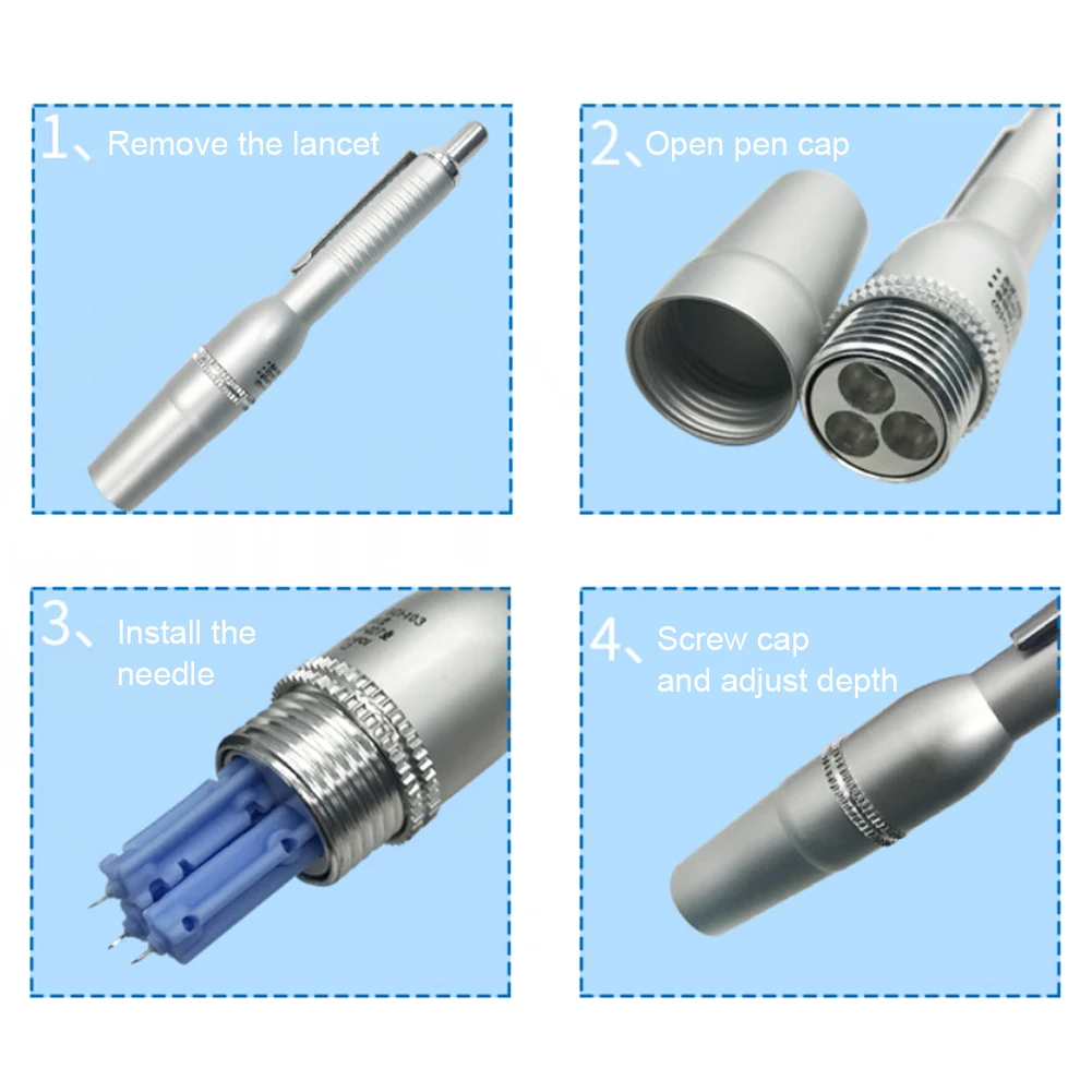 Тройная металлическая ручка для анализа крови, прокол, массажная палочка, ланцет для анализа крови, регулируемая глубина, тест на глюкозу