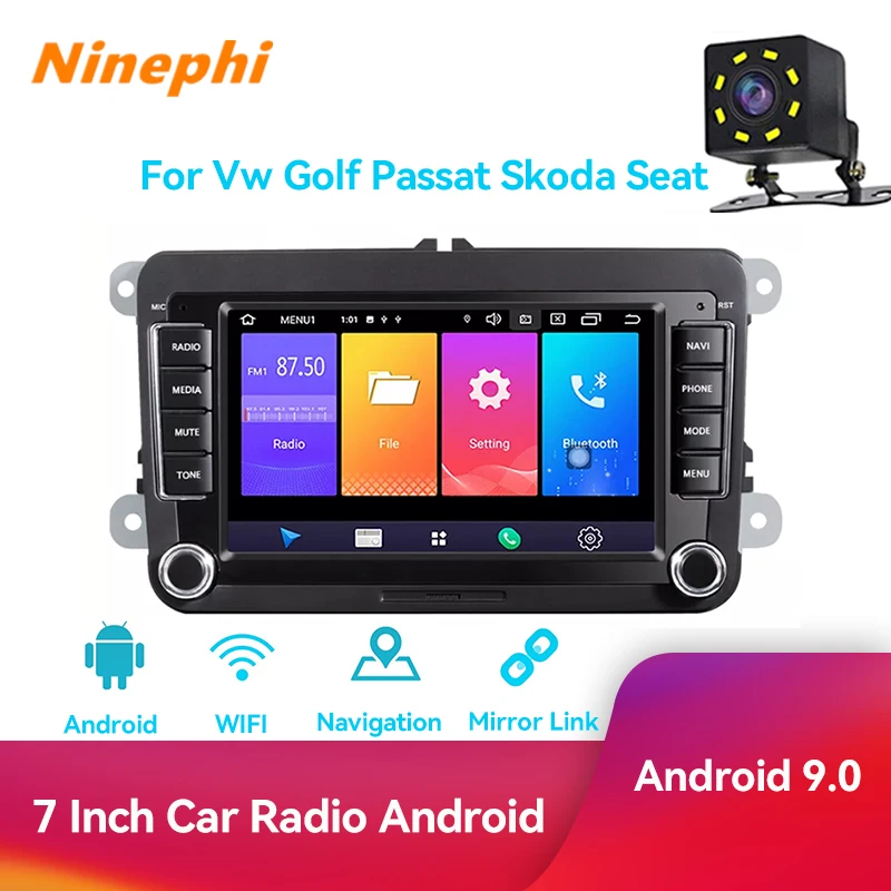 Автомобильный мультимедийный плеер, стерео-система на Android 9,0, с 7 "экраном, Bluetooth, TF, FM, для VW Golf 6, Passat B6, B7, Tiguan, типоразмер 2 Din
