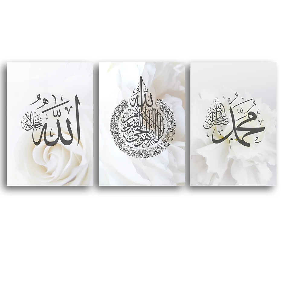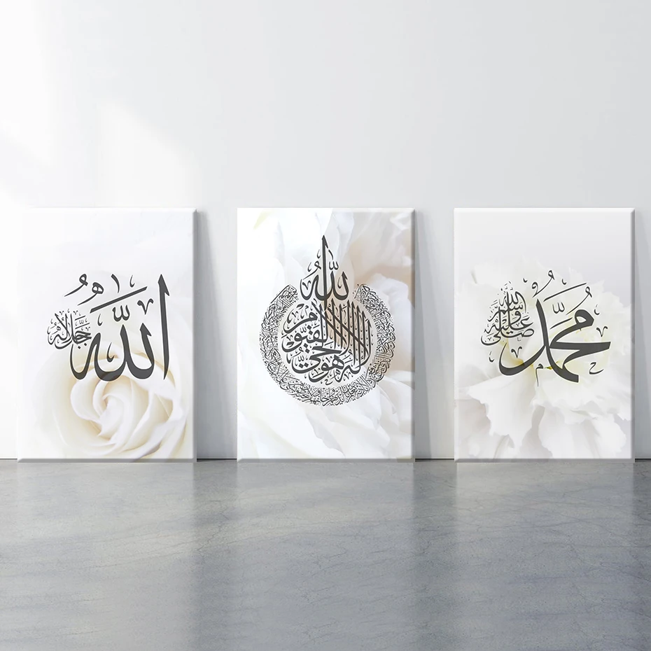 Современные исламские картины с белыми цветами, мечеть, каллиграфия...
