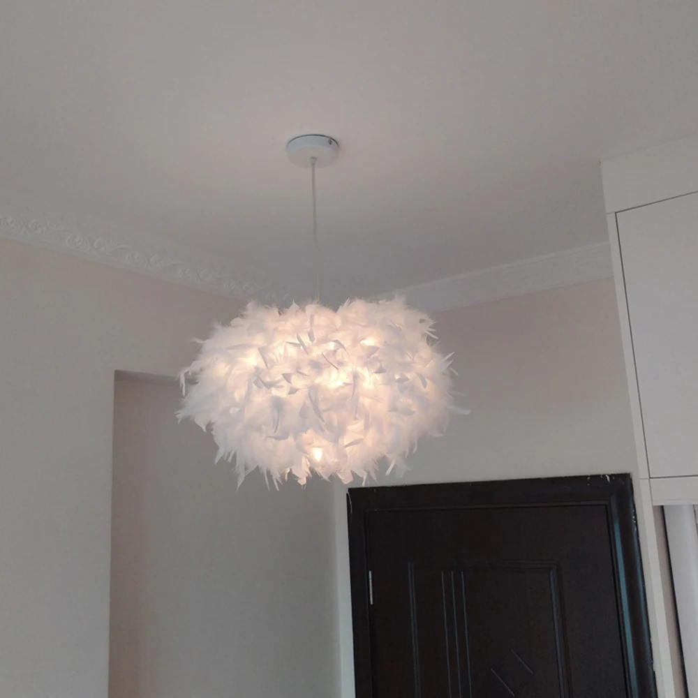 Современная пушистая люстра с белыми перьями, 220 В, люстра с абажуром, светильник для спальни, кабинета, декоративная креативная люстра