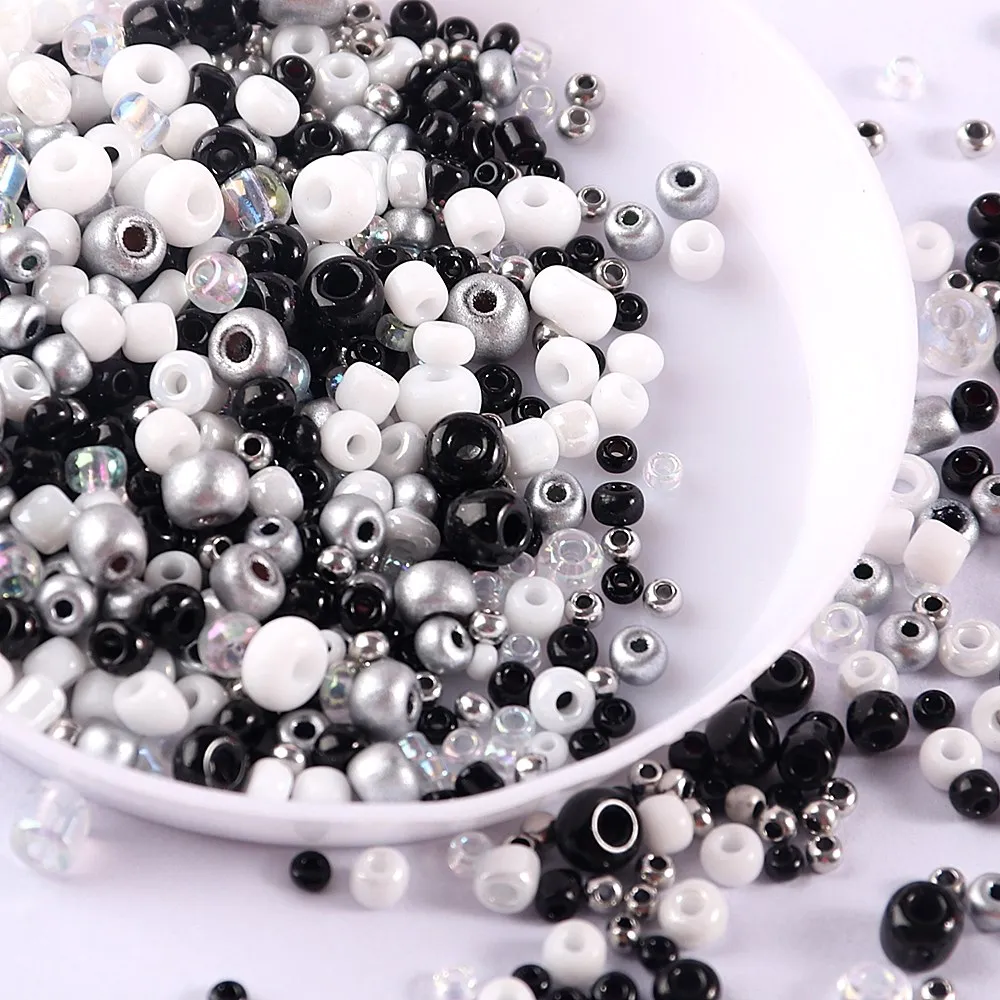 Смешанные 1,5-4 мм стеклянный чешский бисер 10g черный, белый, серый Spacer Бусины для ожерелий и браслетов "сделай сам" для изготовления ювелирных изделий, одежды, аксессуары для шитья