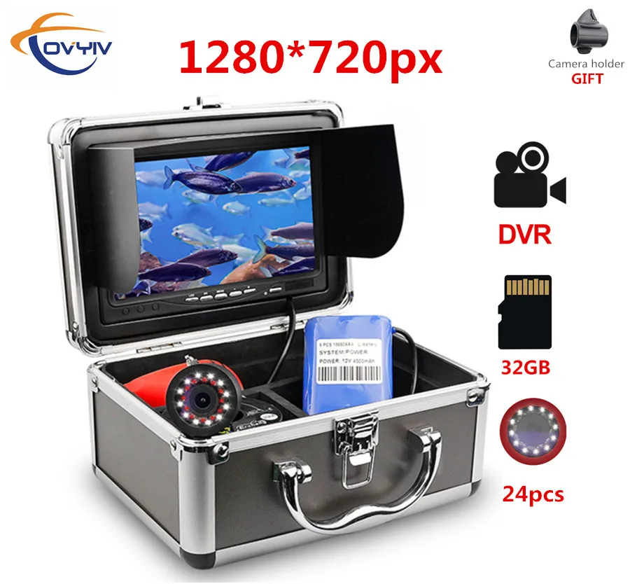 COVYIV 7-дюймовая камера для рыбалки 1200TVL HD подводная видеокамера для зимней рыбалки рыболокатор с разрешением DVR 1280*720