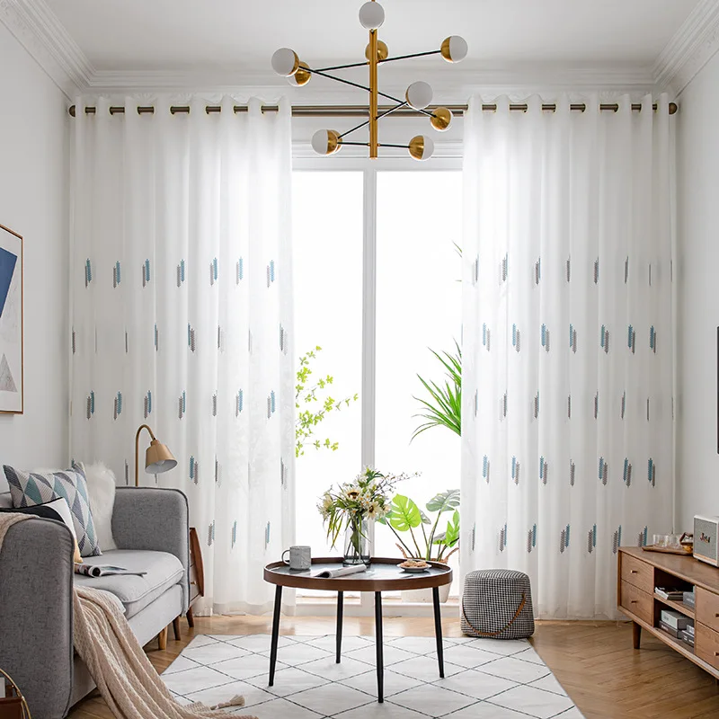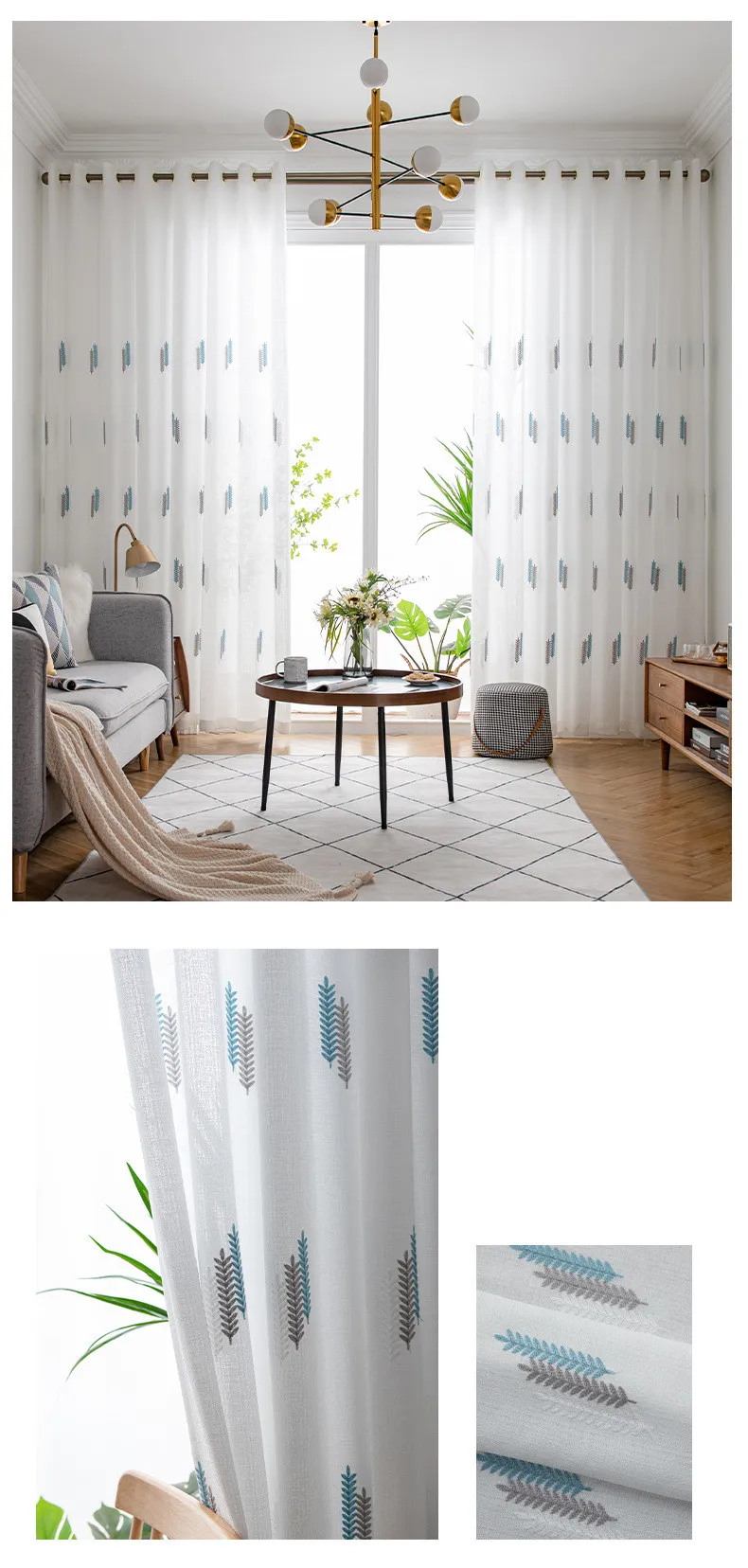 Шторы с вышивкой в скандинавском стиле, прозрачные Занавески для го...