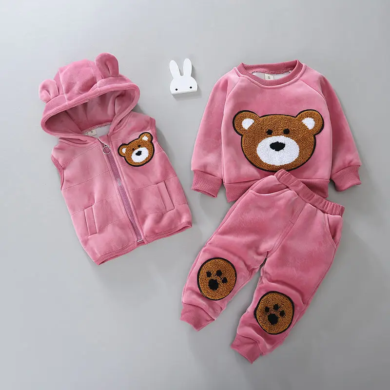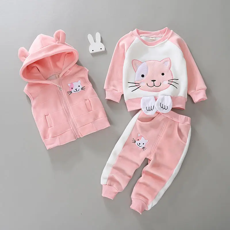 Детская одежда, костюм из 3 предметов с клипсой, хлопковое пальто для мальчиков и девочек на весну и осень, зимняя одежда