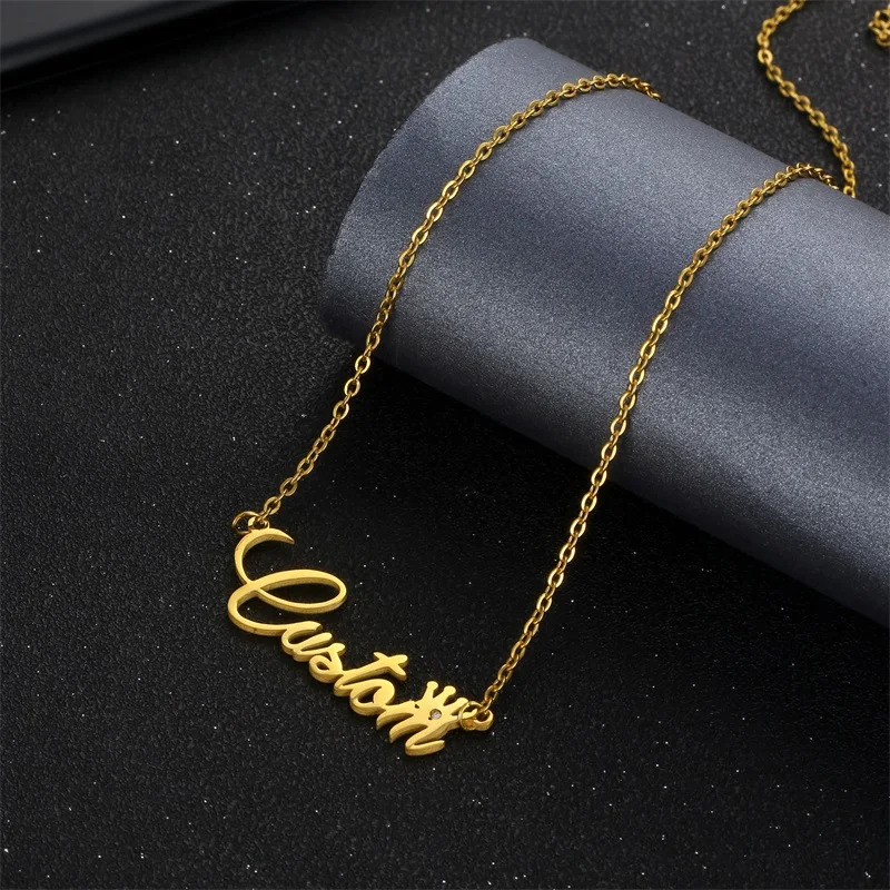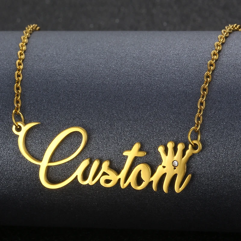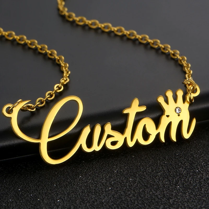 Индивидуальное модное ожерелье с именем из нержавеющей стали с бриллиантами для женщин, персонализированное ожерелье с короной и буквой на заказ, кулон-табличка с именем