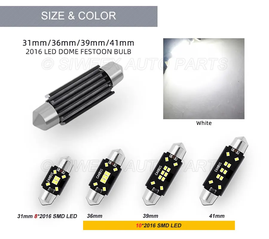 1 шт. 31 мм 36 мм39 мм41 мм Автомобильный светодиодный фестон лампа 10 8 2016 SMD Подсветка регистрационного номера Canbus Error Free двери купола лампочки белого цвета, работающего на постоянном токе 12 В