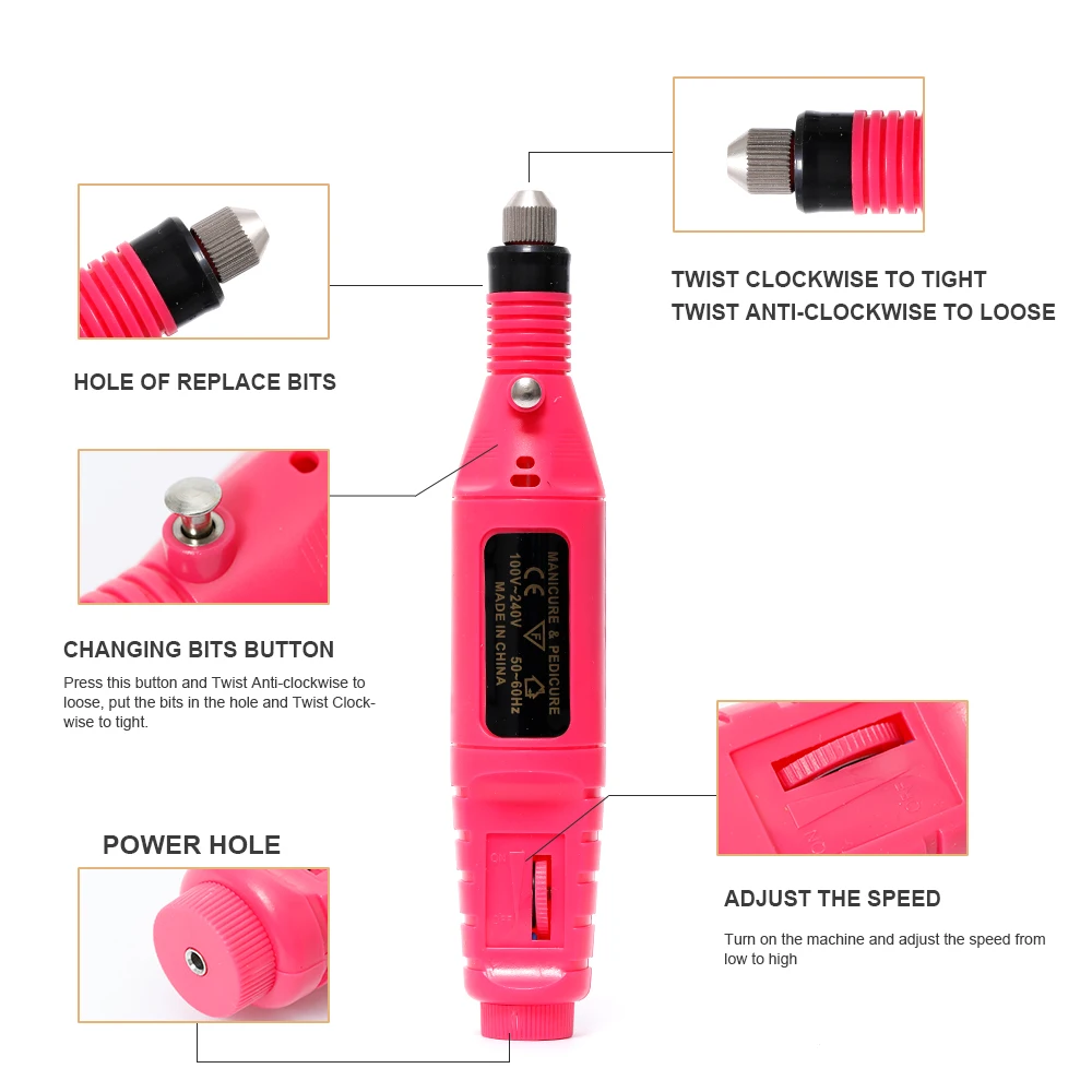 Набор для маникюра, 20 предметов, полный набор для дизайна ногтей, 36 Вт, лампа для сушки ногтей, электрическая дрель, набор инструментов для ногтей