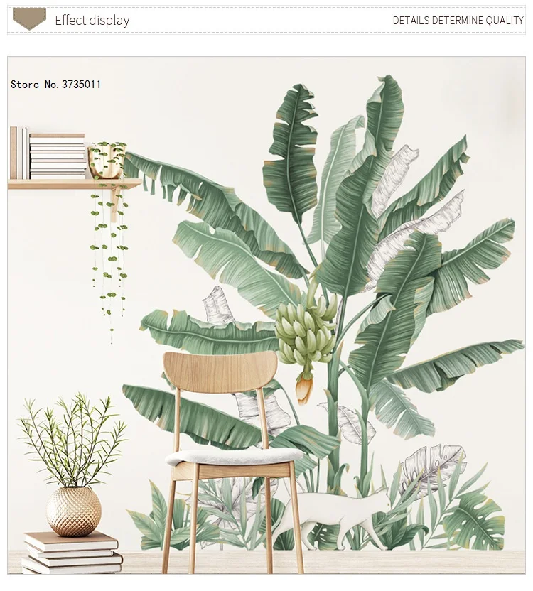 Тропические растения, банан, лист, настенные наклейки для гостиной,...