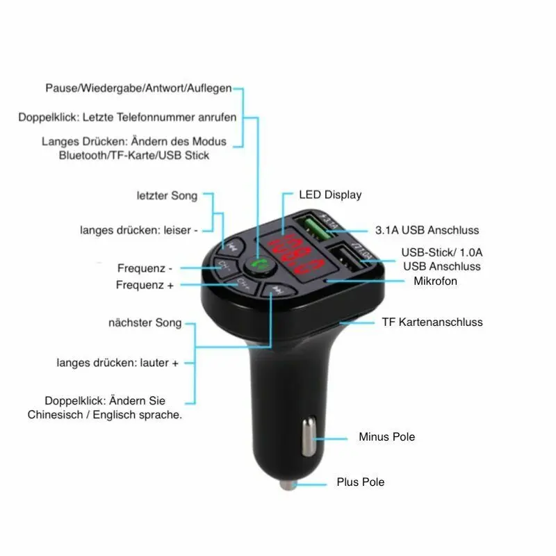 Особенности:1.Bluetooth hands-free call; Usb-порт с функцией зарядки: он имеет функцию бесконтактного вызова blue tooth и usb-порт с функцией зарядки2. Подавление эха и обработка шумов во время звонков: Подавление эха и обработка шумов во время звонков3: о технологии передачи: поддерживает стерео bluetooth и технологию передачи FM4: поддержка: Поддержка USB/TF карты/аудио головки и MP3 формат музыки5: функция автоматического отключения памятиХарактеристики:Цвет: черныйМатериал: корпус из АБС-пластика и печатная платаМощность прикуривателя: DC12V-24V источник питания;Версия Bluetooth 5,0 FM Частота передачи: 87,5 ~ 108 МГцПосылка включает в себя:1 mp3-плеерПримечания:1. Пожалуйста, учитывайте погрешность в 1-3 см из-за ручного измерения и убедитесь, что вы не возражаете перед заказом.2. Пожалуйста, учтите, что цвета зависят как от хроматической аберрации, так и от размещения снимков.