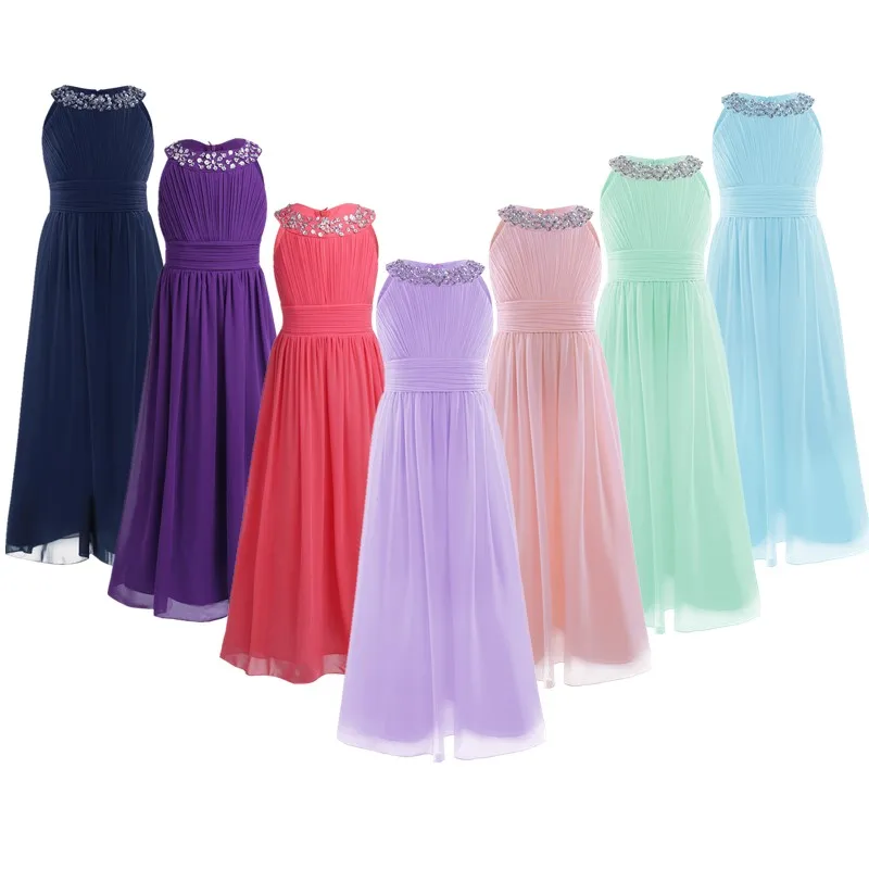 Шифоновое платье для подружки невесты, длинное платье принцессы для девочек, одежда для первого причастия, Детские платья для девочек, платье для свадебной вечеринки