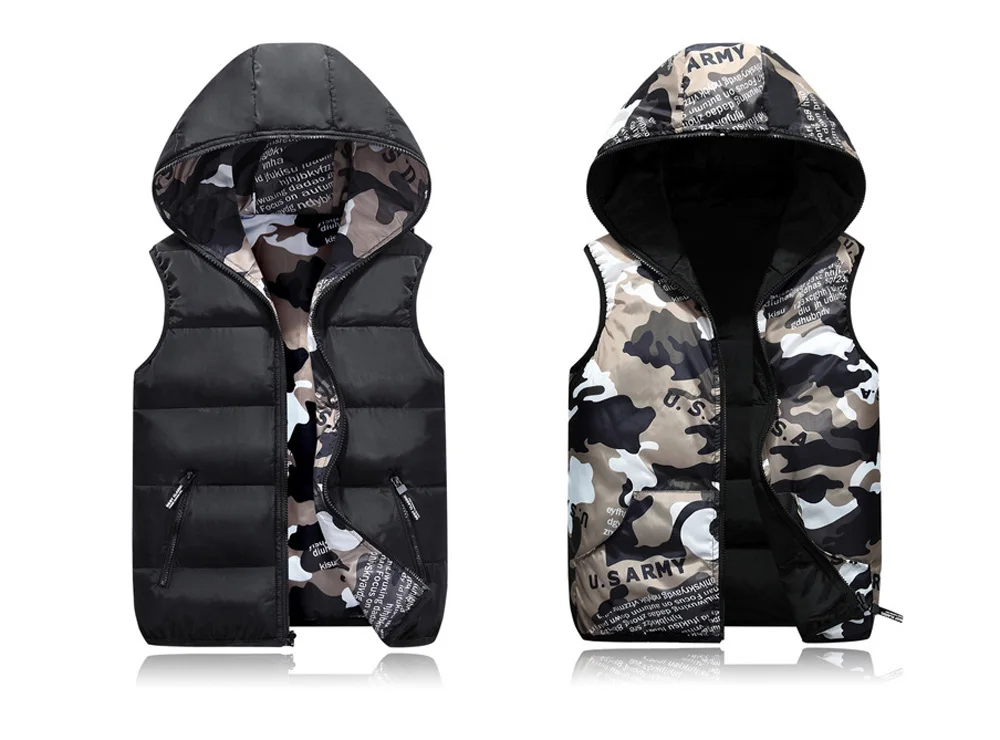 Жилет женский двухсторонний Камуфляжный, с капюшоном, зимний, черны...