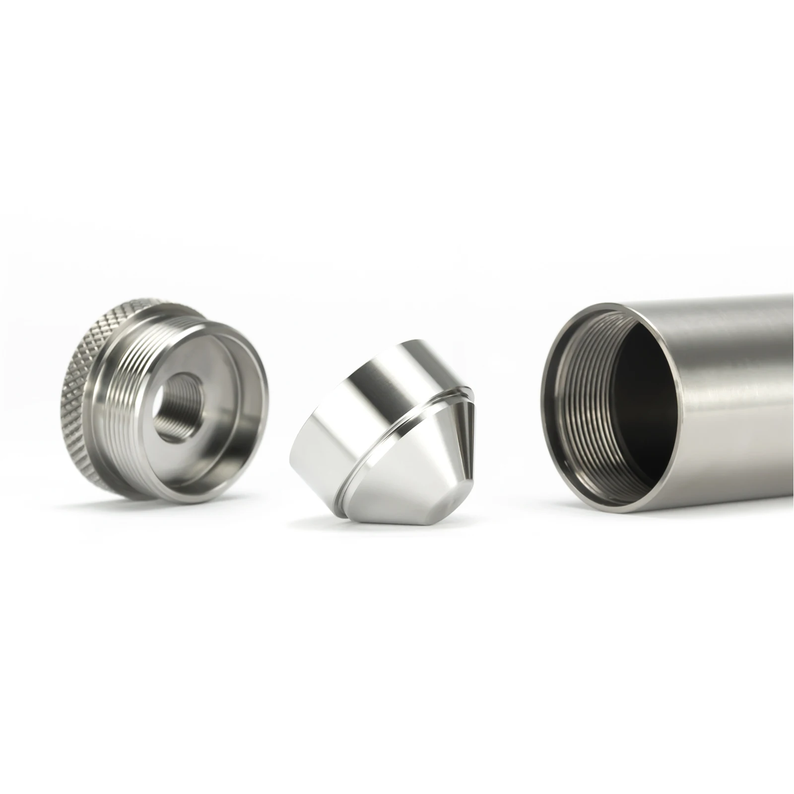 Материал:GR 5 титановые трубки и крышки(ЧПУ из нержавеющей сталиЧашки и прокладки) Внешний диаметр: 1,45" Внутренняя Диаметр: 1,25'' Общая длина: 7,00" Съемный для чистки Посылка включает в себя: 1 титановая трубка 9x нержавеющая сталь CNC чашки 1x прокладка из нержавеющей стали 2xТитановая Крышка s (5/8-24 или 1/2x28 + твердая крышка)