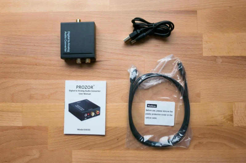 -1 x Цифровой аудиоконвертер с разъемом AUX 3,5 мм; -1 USB-кабель; -1 ручка; -1 оптический кабель (кабель Toslink);