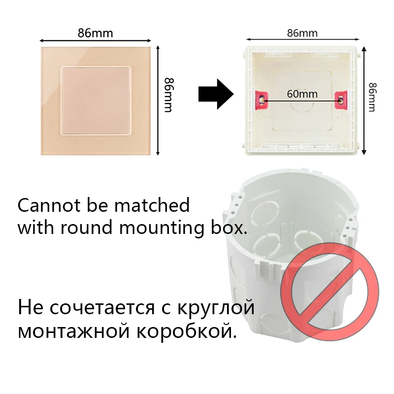 ✔✔✔Все товары в этом магазине не могут использоваться с круглыми монтажными коробками.✔✔✔Пожалуйста, выберите правильный размер в соответствии с размером изделия.