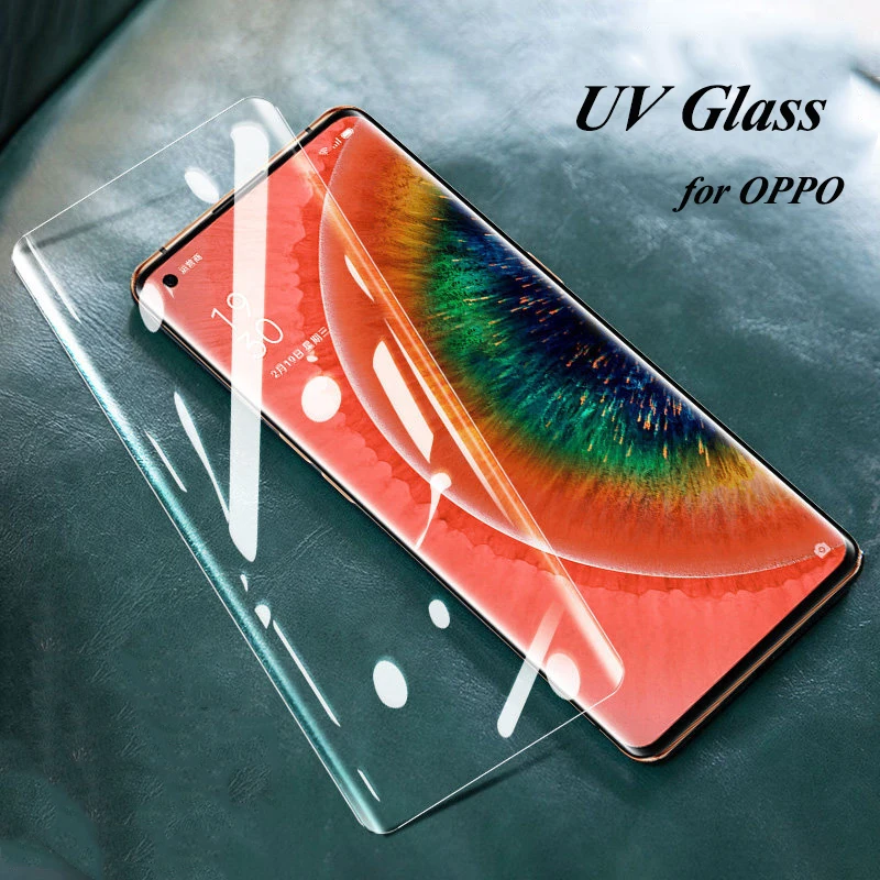 Размер: Полное клейкое УФ-жидкое Защитное стекло для OPPO Find X X2 Pro Reno 3 4 Pro 5G, защитная пленка