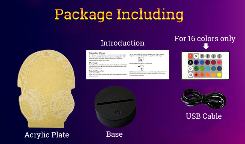 Спецификация-Тип изделия: 3D светодиодный ночной Светильник-Основной Материал: АБС-пластик-Светильник Материал направляющей пластины: акрил-Процесс: лазерная гравировка-Режим питания: USB или аккумулятор (батарея в комплект не входит)-Входное напряжение: 5 в пост. Тока-Источник: светодиодный светильник-Светильник: 7 цветов или 16 цветов-Светильник: 3D стереоскопический рисунок (как показано на фотографии)-Режим переключения: сенсорный выключатель/сенсорный выключатель + пульт дистанционного управления-Напряжение продукта: 5 В-Мощность продукта: 3 ВтПосылка в том числе7 видов цветов Пульт дистанционного управления (пульт дистанционного управления в комплект не входит):1 акриловая пластина1 основание1 х USB кабель1 Инструкция на английском языке16 Цвет пульт дистанционного управления (с Дистанционный пульт):1 акриловая пластина1 основание1 х USB кабель1 х пульт дистанционного управления1 Инструкция на английском языке