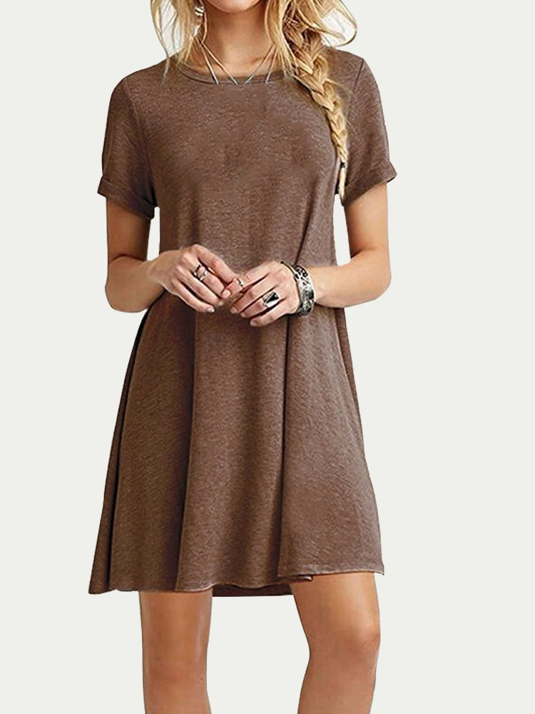 Однотонное платье с коротким рукавом, повседневное удобное платье-футболка, женское модное свободное пляжное платье