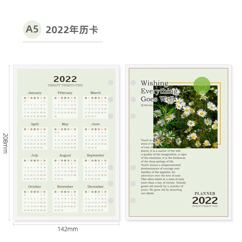 2022 Симпатичные Дейзи календарь Тетрадь внутренняя Бумага A5A6A7 с...