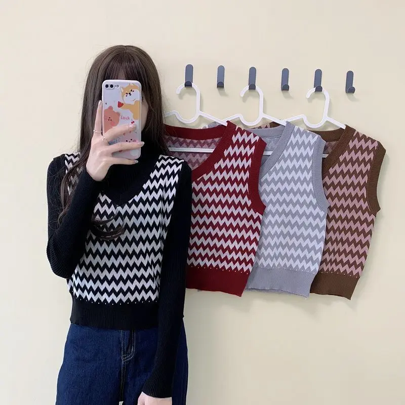 В винтажном стиле; С v-образным вырезом Вязанный свитер для женщин Повседневная без рукавов эластичный пуловер свитер женский свободный свитер трикотажные джемперы