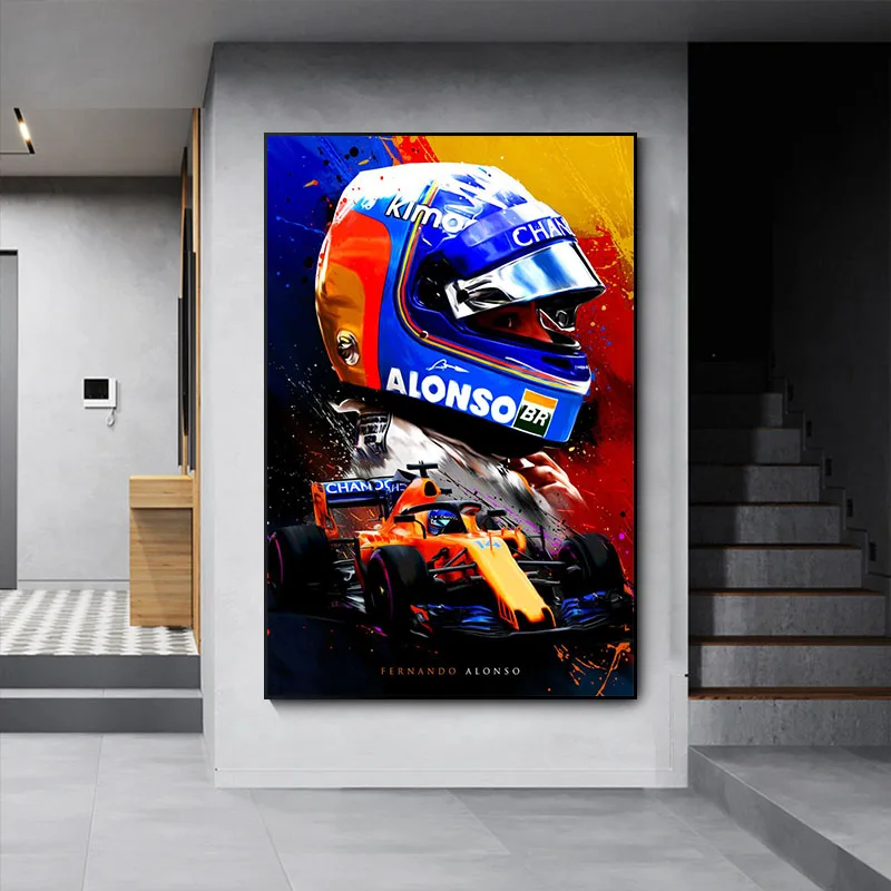 Абстрактный постер Фернандо Алонсо F1, Современный домашний декор, холст, печать, модульная Настенная картина, украшение для дома, гостиной