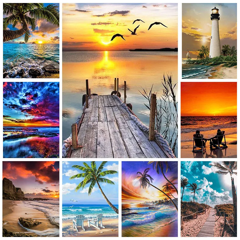 Алмазная картина 5D "сделай сам", вышивка крестиком, морской пейзаж...