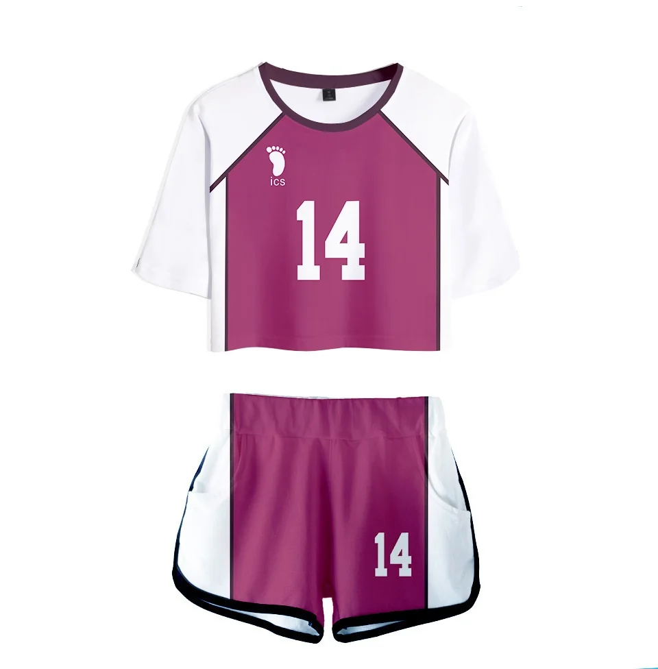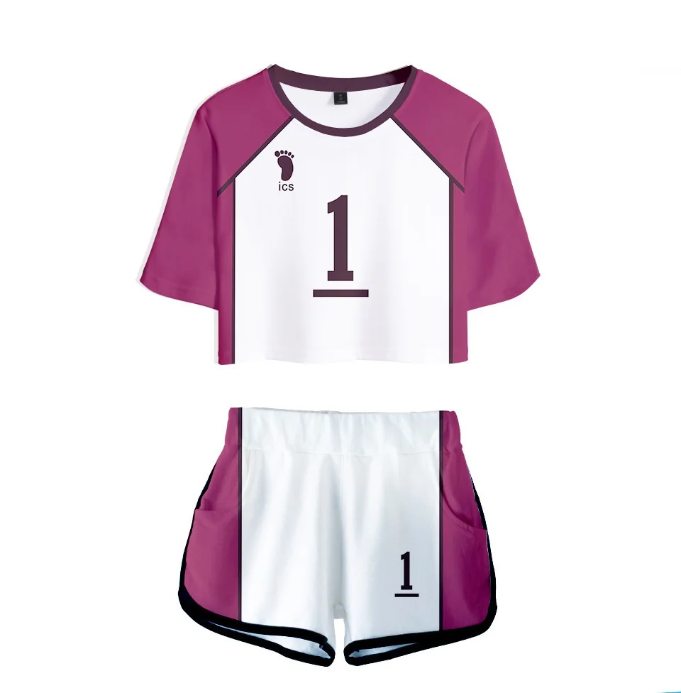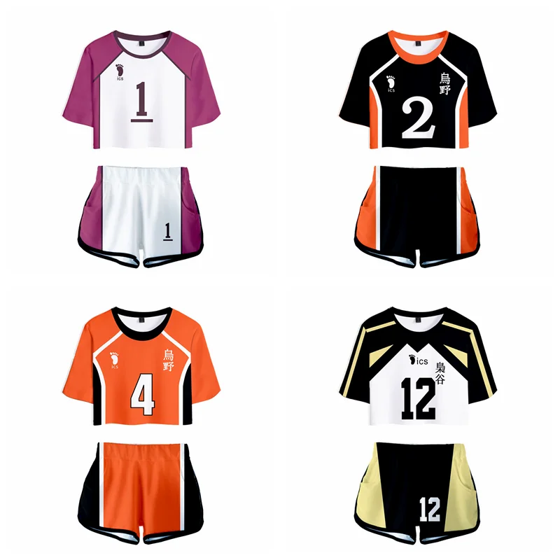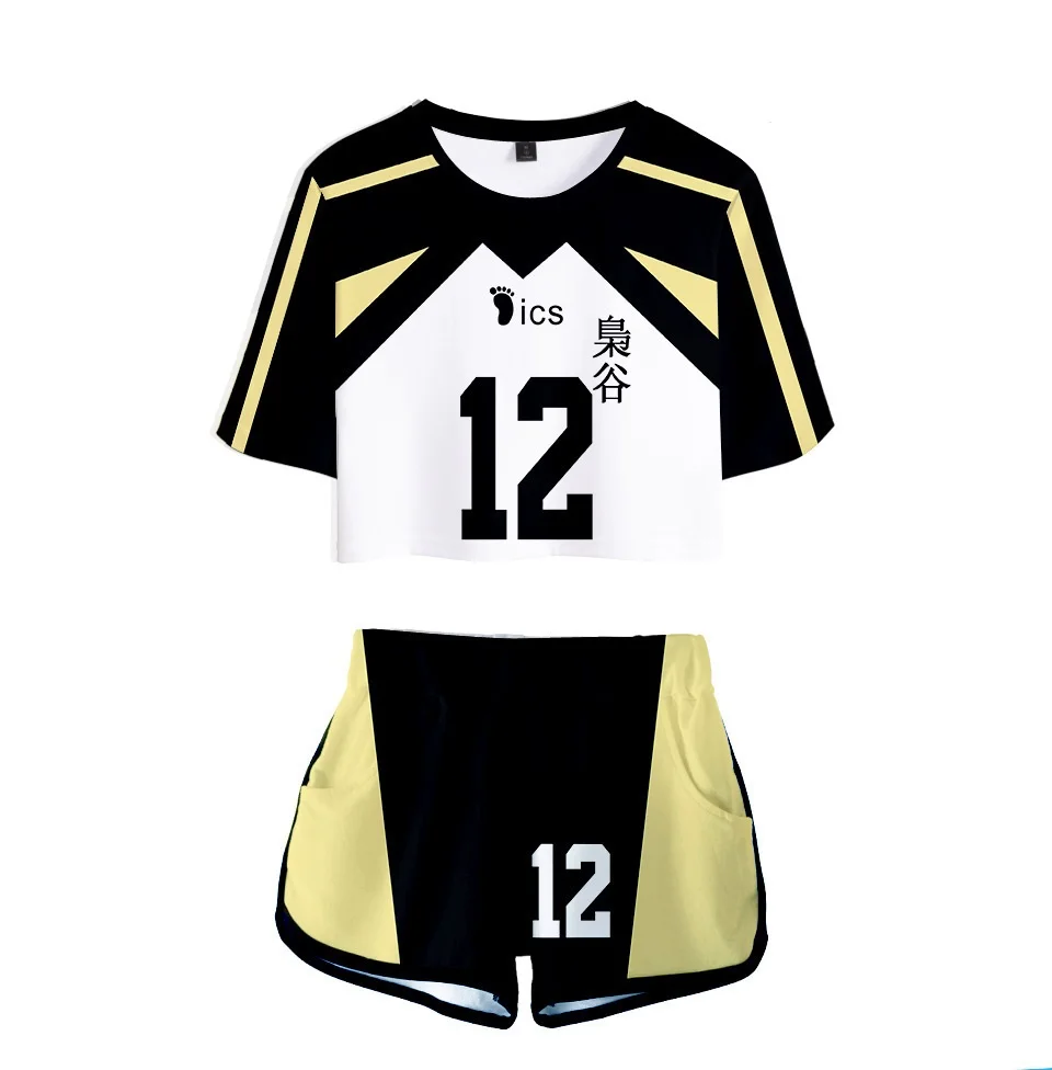 Футболка Haikyuu с пупком росы + короткие штаны 3D ворона старшая ш...