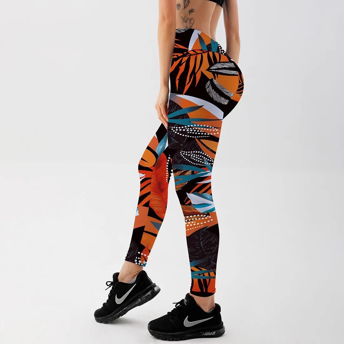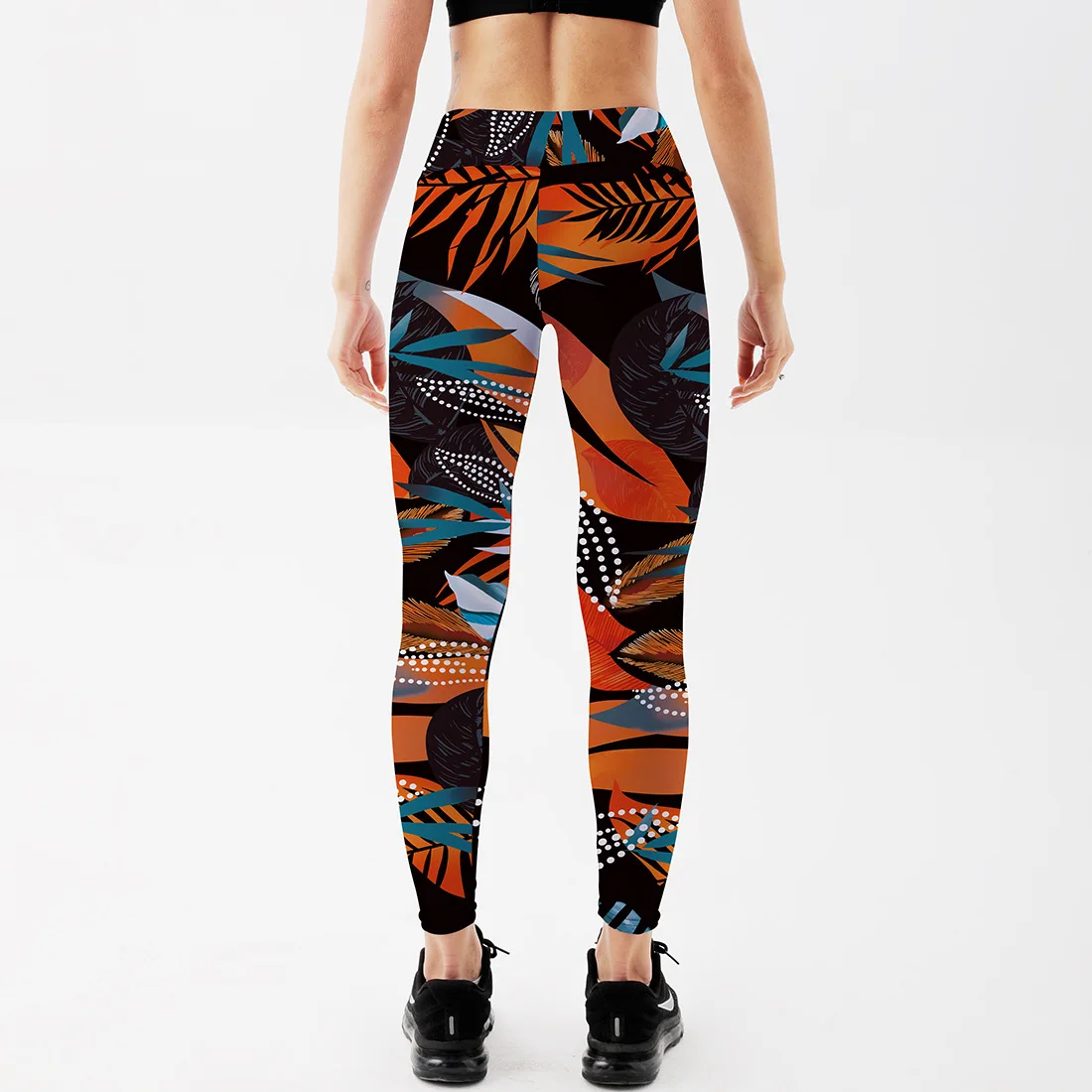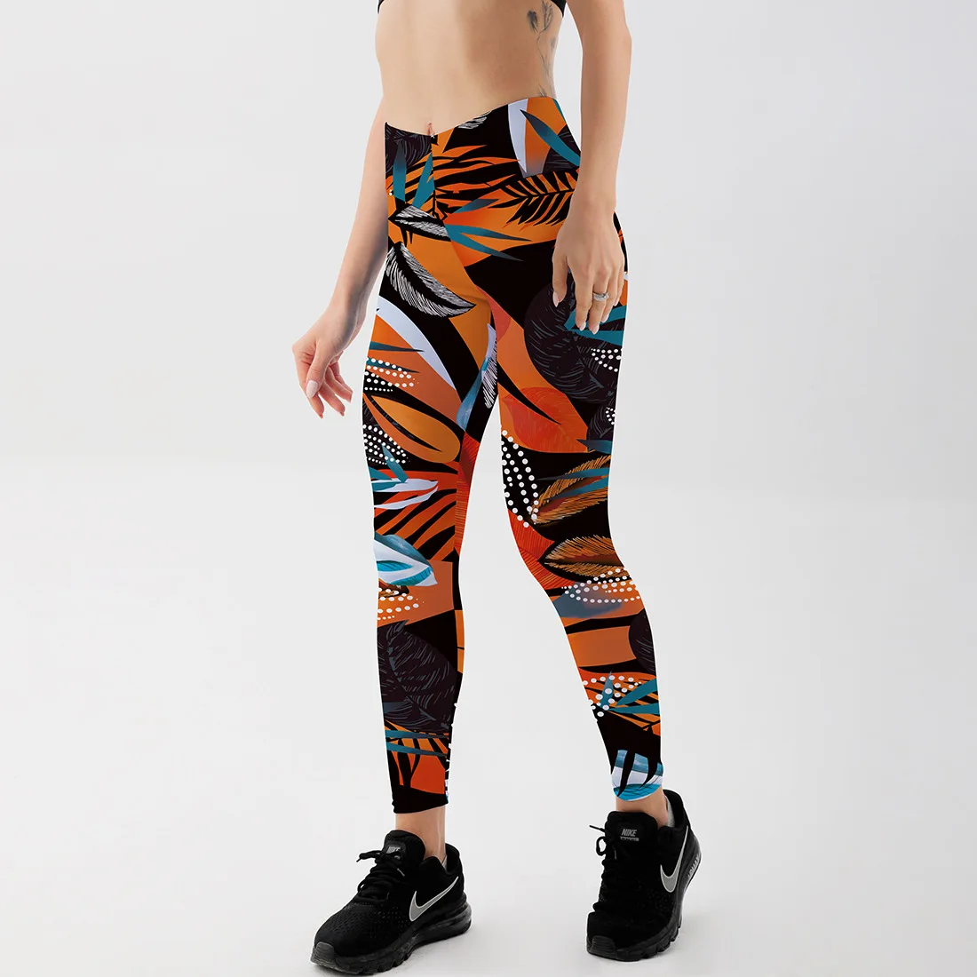 Женские длинные леггинсы для фитнеса, модные эластичные леггинсы до щиколотки с высокой талией и принтом желтых листьев, пуш-ап