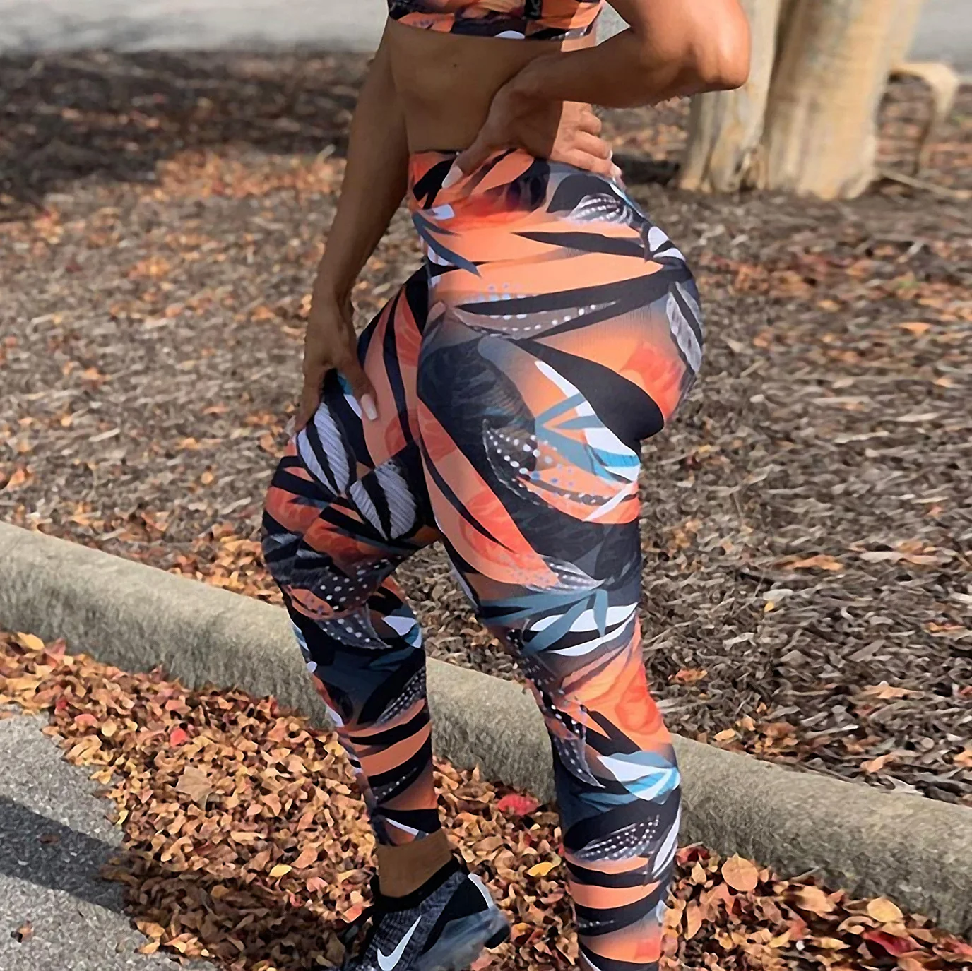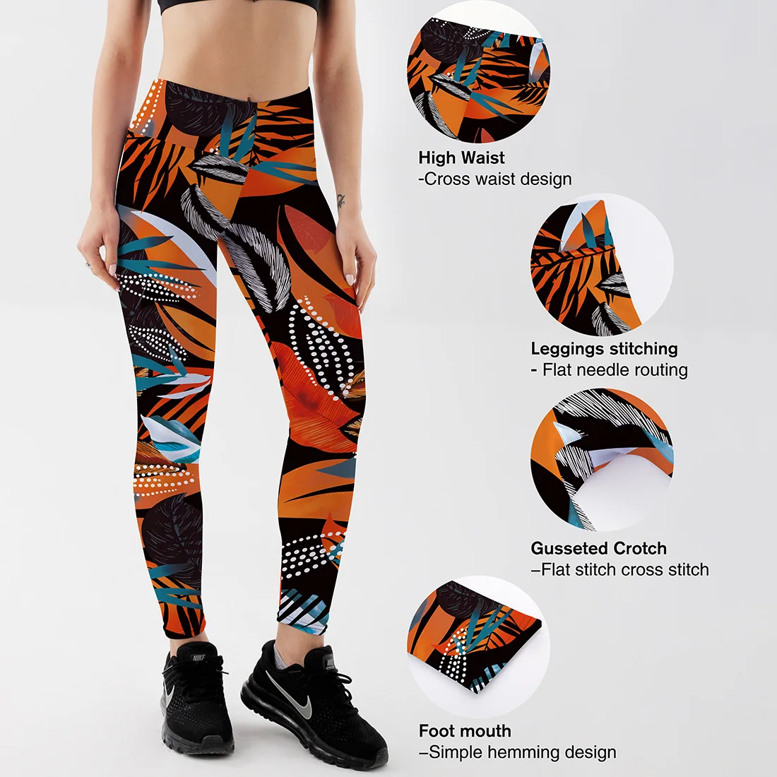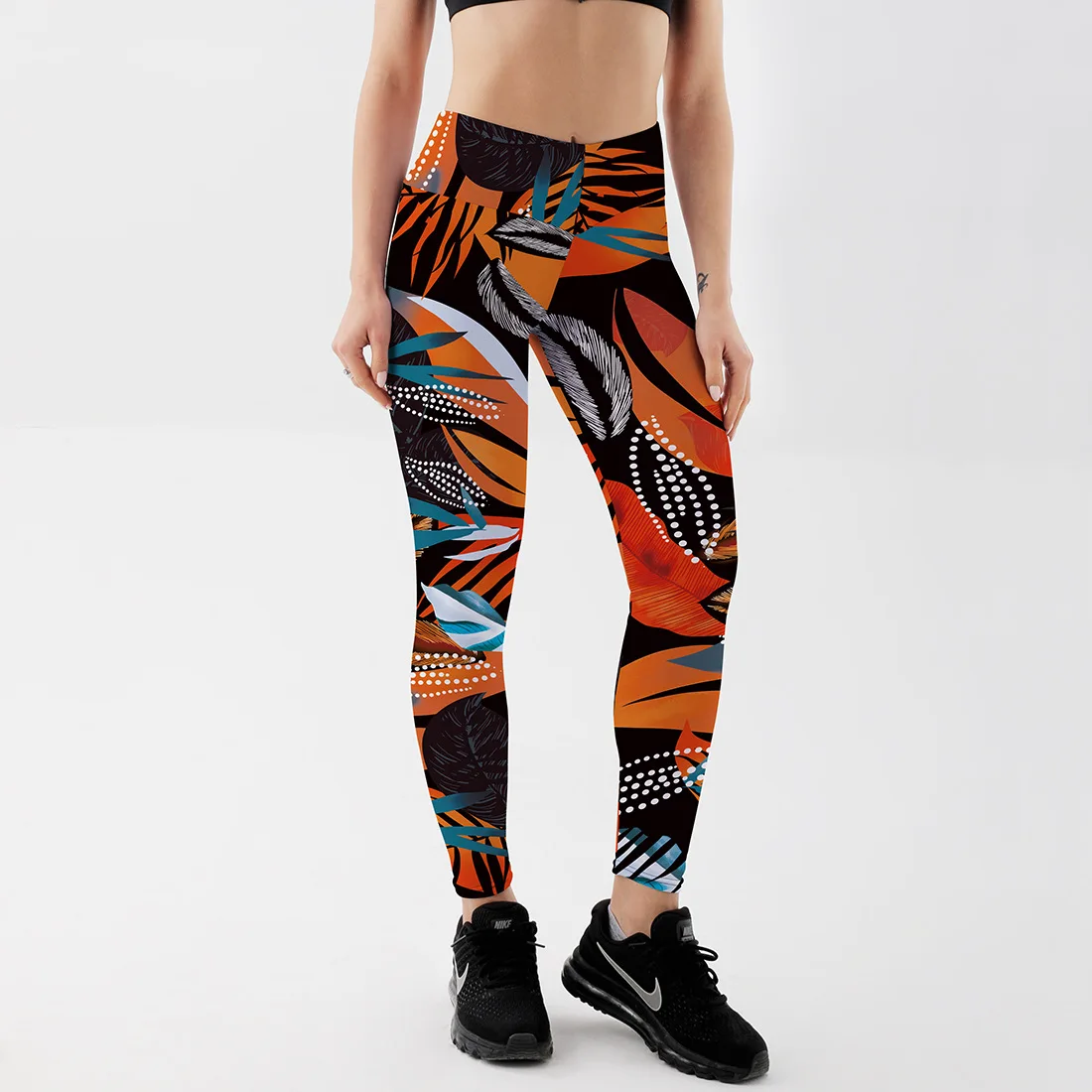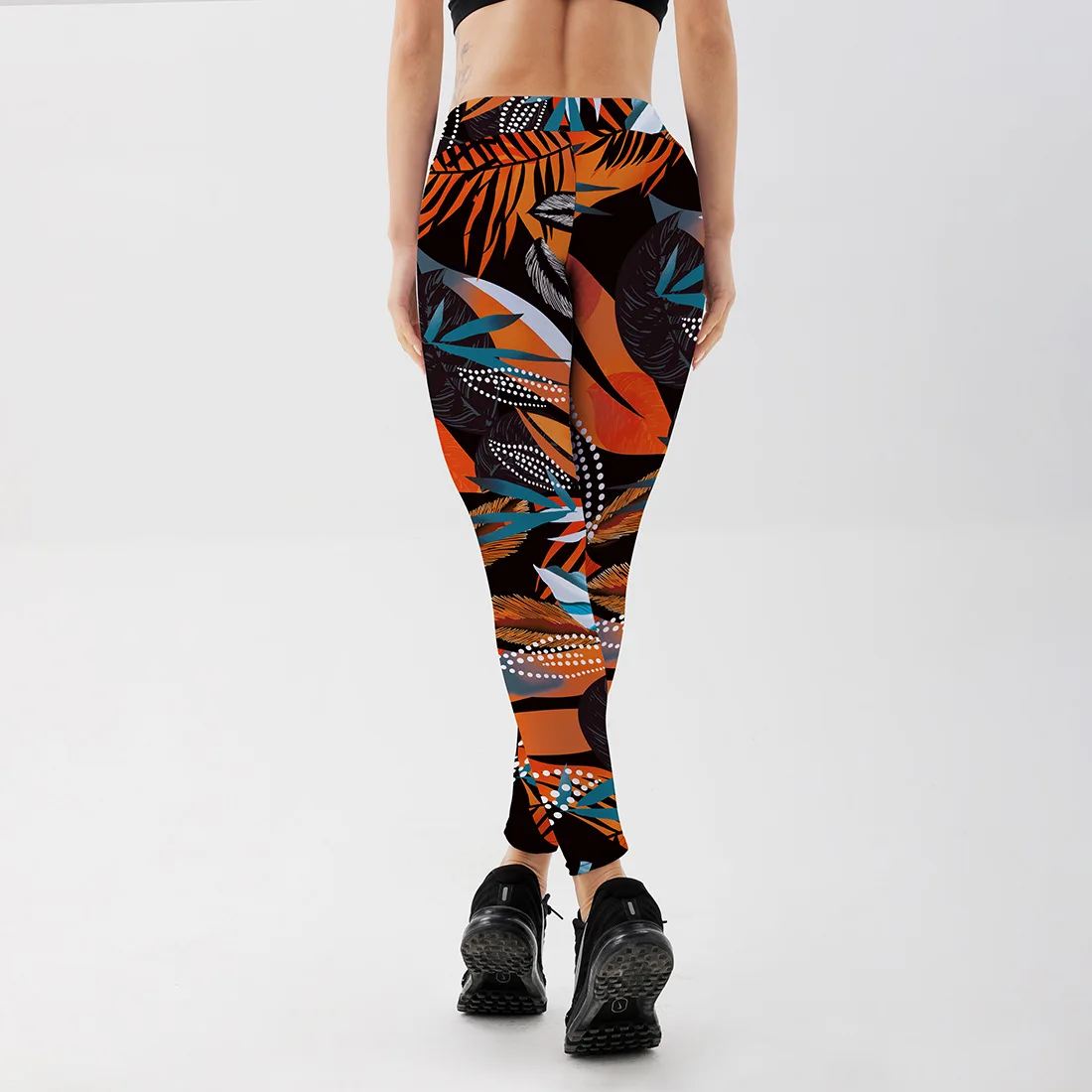 Женские длинные леггинсы для фитнеса, модные эластичные леггинсы до щиколотки с высокой талией и принтом желтых листьев, пуш-ап