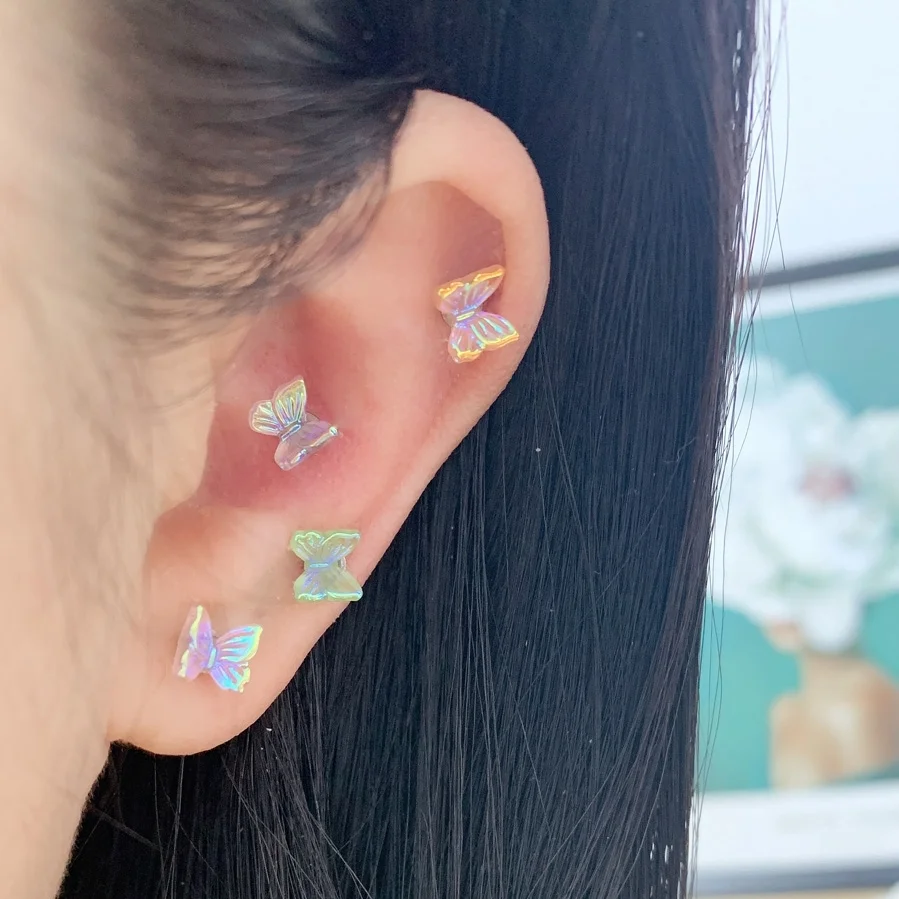Спецификация: Название продукта: серьги-гвоздики из титановой стали с красочными бабочками Aurora