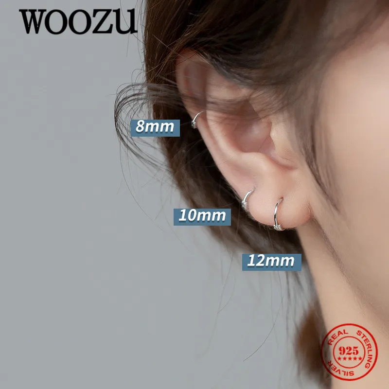 WOOZU реальные 925 стерлингового серебра минимализм круглые серьги-кольца для женщин вечерние в Корейском стиле; Одежда для девочек-подростков уха пряжки, ювелирные изделия в качестве подарка