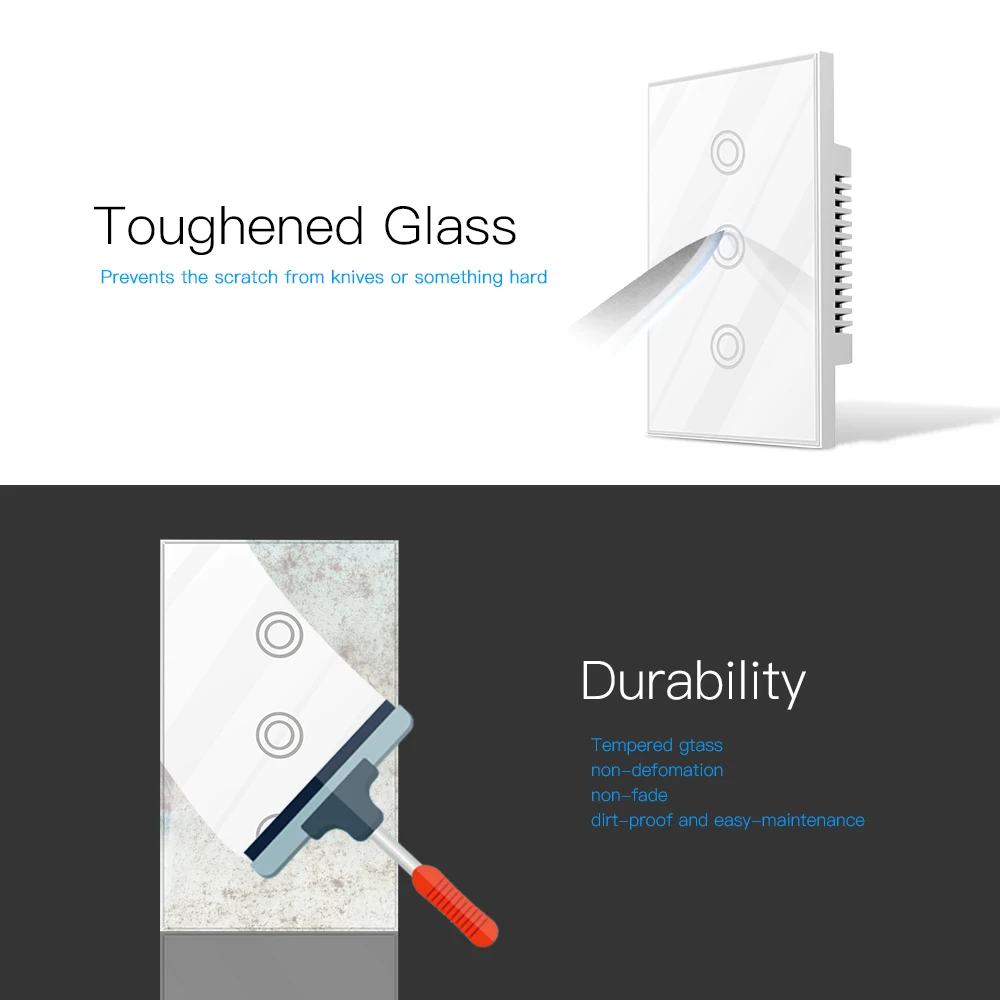 1. Пульт дистанционного управления-позволяет контролировать включение/выключение света в любом месте.2. Передовые материалы-модный дизайн 1 мм панель из закаленного стекла.3. Сенсорный смарт-чип-набор обеспечивает немедленную реакцию.4. Защита от перегрузки-автоматически отключите питание.5. Интеллектуальное распознавание-Автоматическое Сопряжение.6. Постоянная память-запоминает последний Статус перед отключением питания.7. Энергосбережение-вы всегда можете выключить свет с помощью приложения8. Состояние синхронизации-состояние устройства в режиме реального времени.9. Светодиодный дисплей в ночное время-низкий светильник, легко включается в ночное время.10. Установите расписание синхронизации-заданные таймеры автоматически Включите светильник в вашей комнате.11. Размер продукта (Д x Ш x В):us stardard12. Нужны живые и нейтральные провода