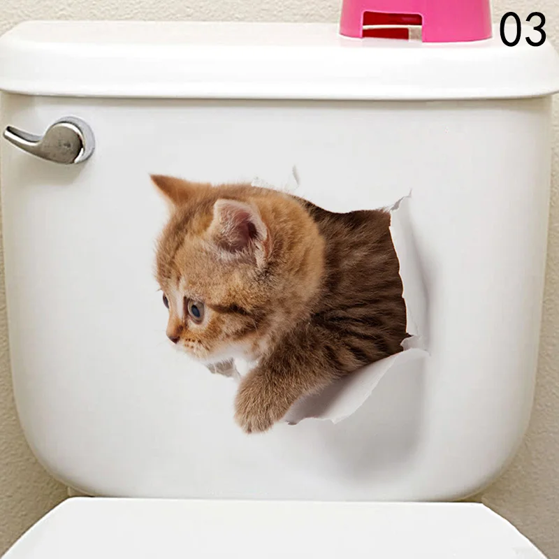 Наклейки на унитаз, 3D кошка, яркая Наклейка на стену, 2021, модная красивая ПВХ водонепроницаемая наклейка с животными для ванной, туалета, декоративная наклейка