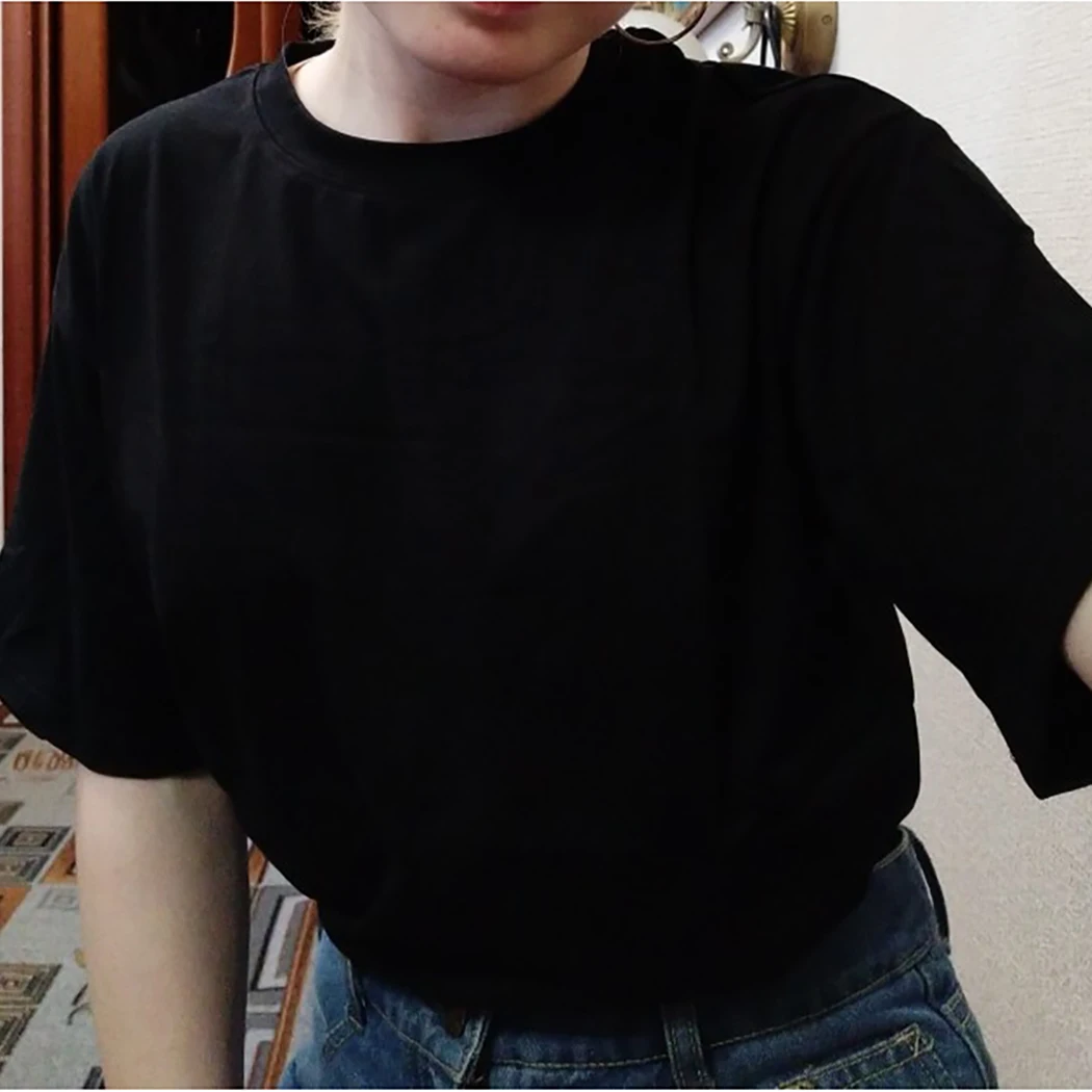 Футболка женская оверсайз, черный топ с круглым вырезом и коротким ...