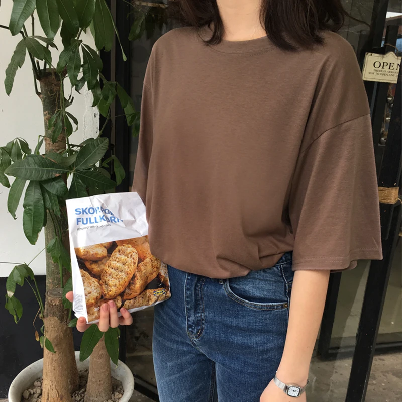 Футболка женская, летняя, однотонная, свободная, с круглым вырезом ...