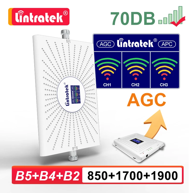 Новое обновление AGC 2G 3G 4G сотовый мобильный телефон усилитель сигнала CDMA 850 1700 1900 MHZ AWS PCS Сотовый усилитель B5 B4 B2 Lintratek