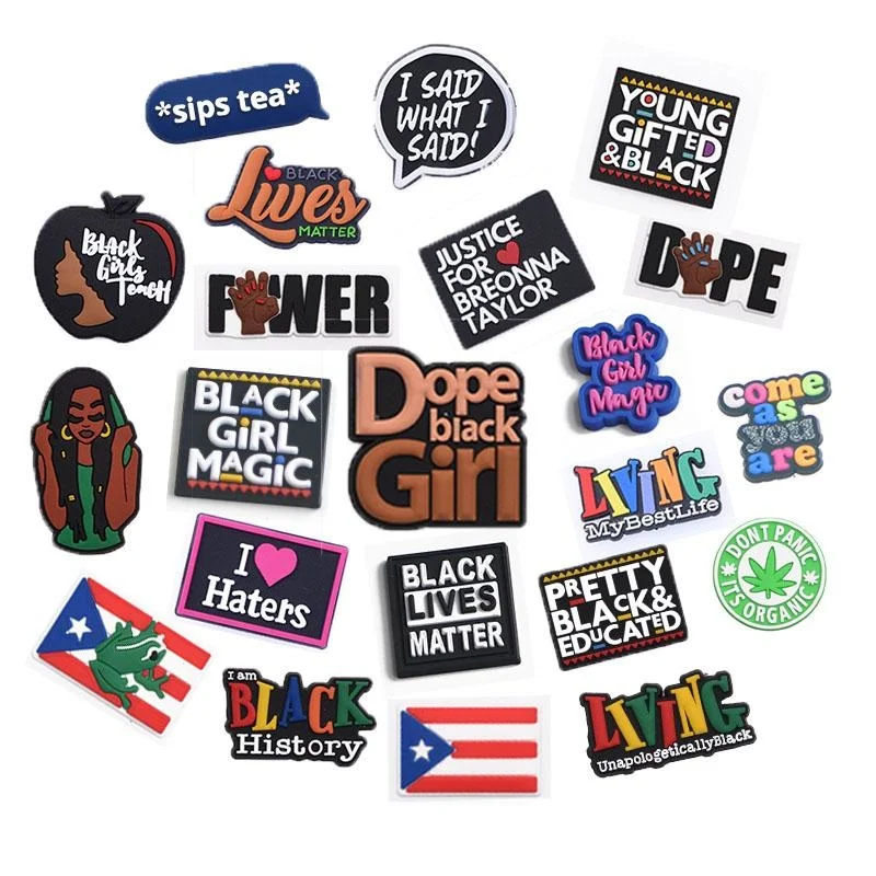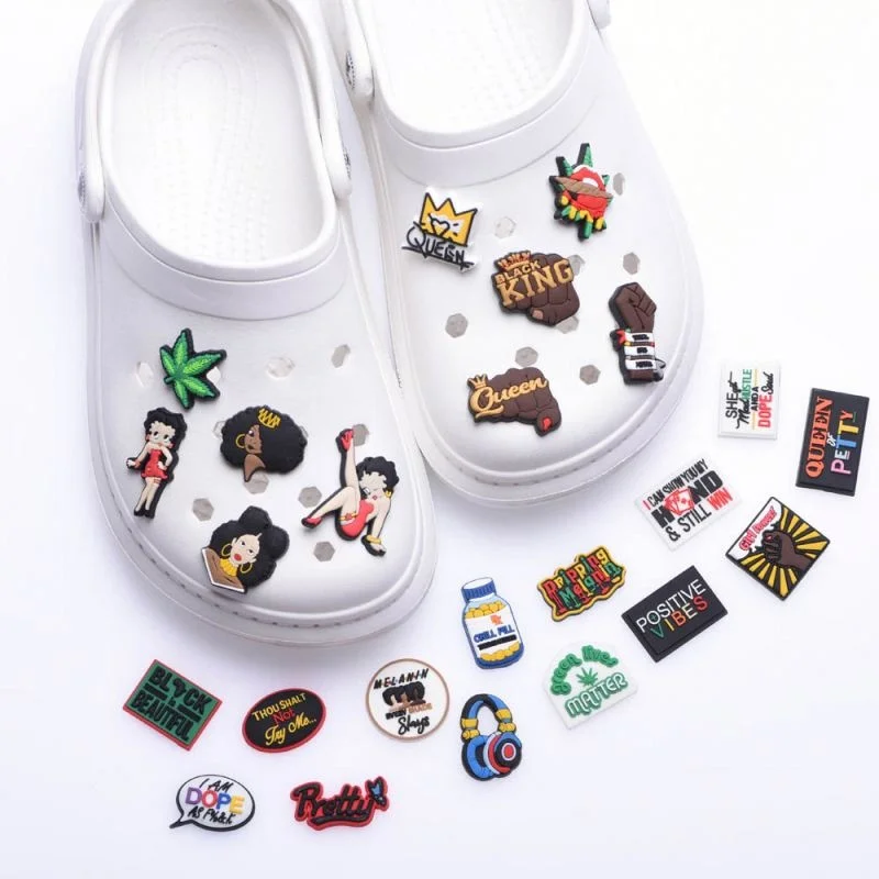 Крутые Подвески Power для девочек, аксессуары для обуви, черные живые материи, подходят для браслетов, украшение для крокса, подарок для детей JIBZ