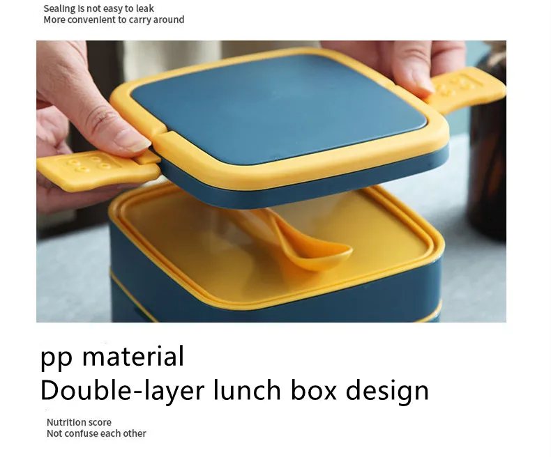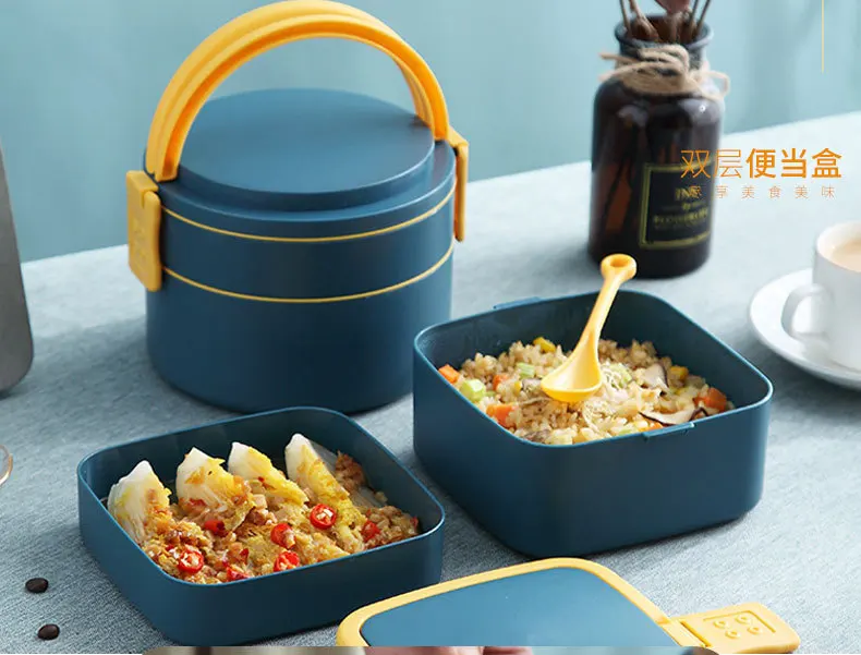 Портативный пластиковый двухслойный Ланч-бокс для микроволновой печ...