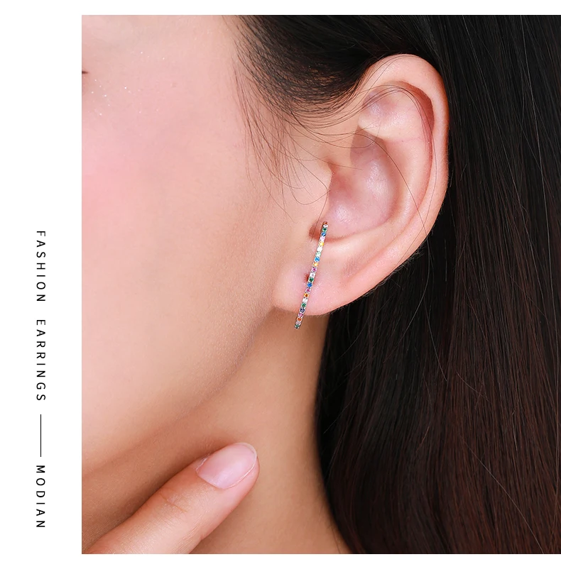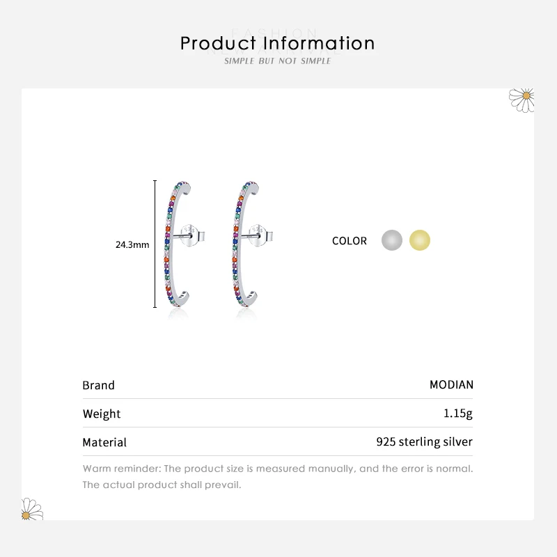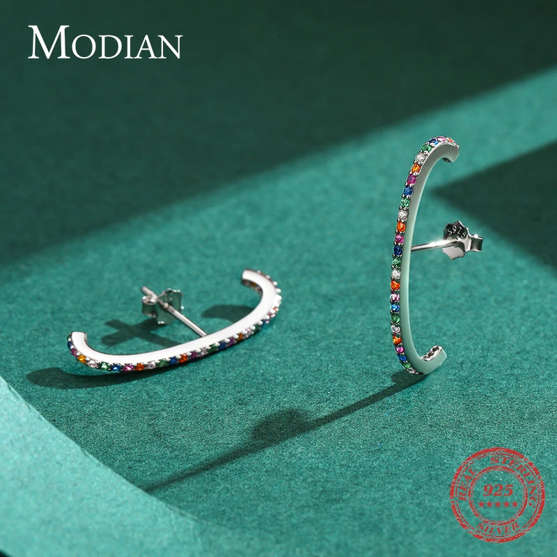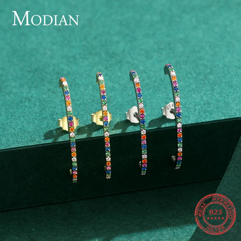 Modian 2021 новый модный роскошный; Доступны все цвета радуги ухо шпильки 925 стерлингового серебра сверкающими камнями серьги-гвоздики для женщин, ювелирные изделия для девушек