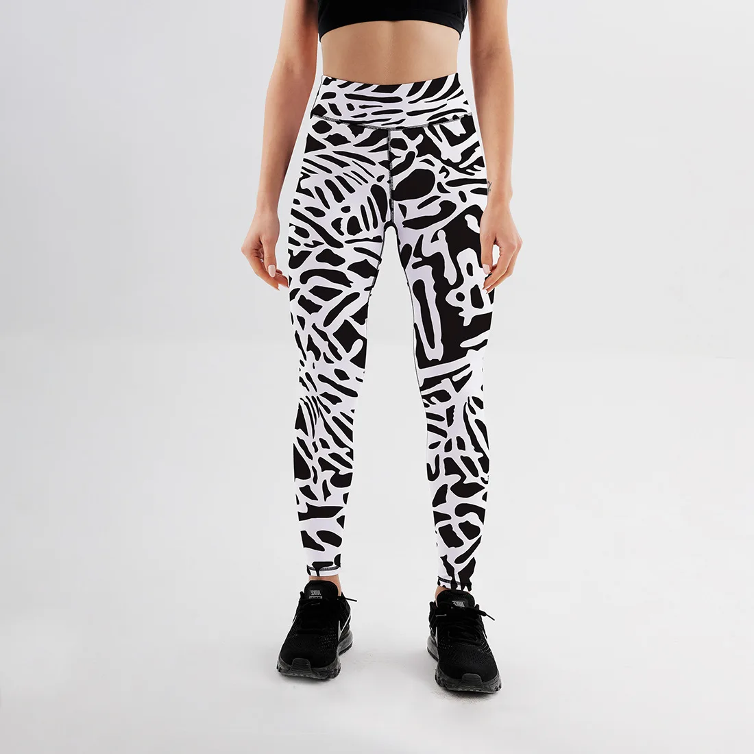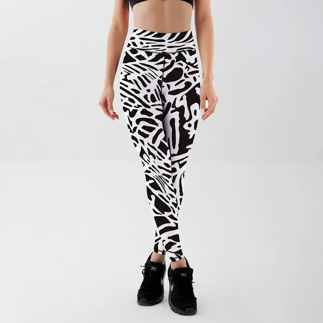Женские леггинсы для фитнеса с принтом зебры, эластичные леггинсы до щиколотки с высокой талией и эффектом пуш-ап из полиэстера