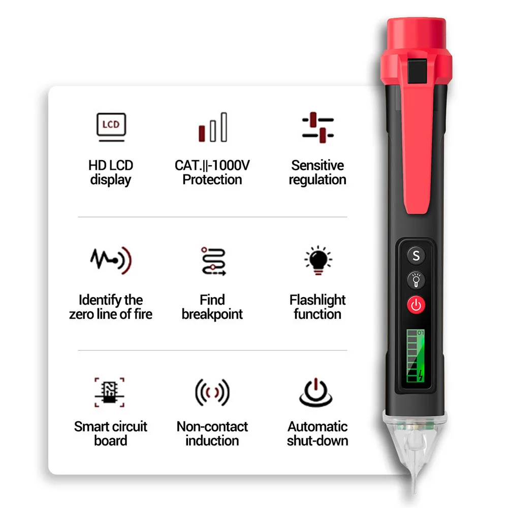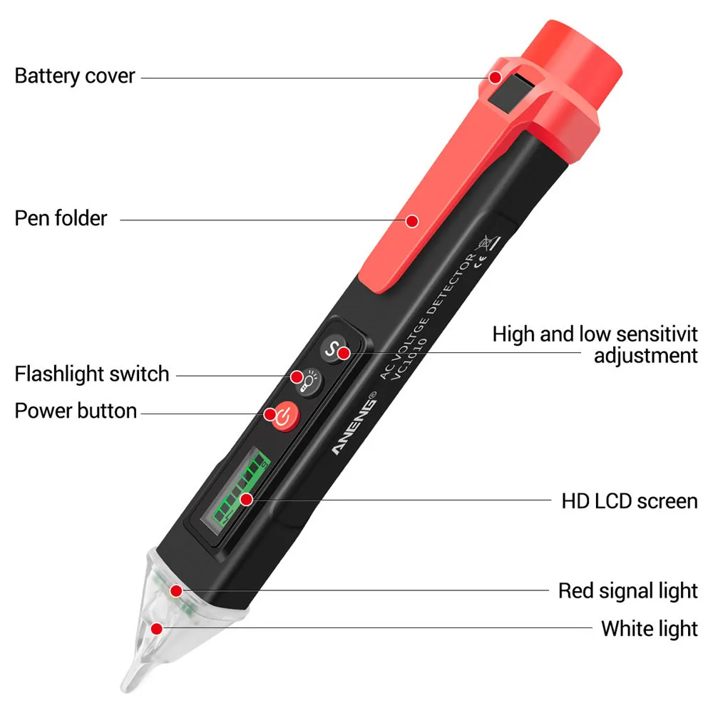 VC1010 Интеллектуальный Бесконтактный детектор напряжения переменногопостоянного тока с сигнализацией, тестер, фотометр, карандаш 12-1000 в